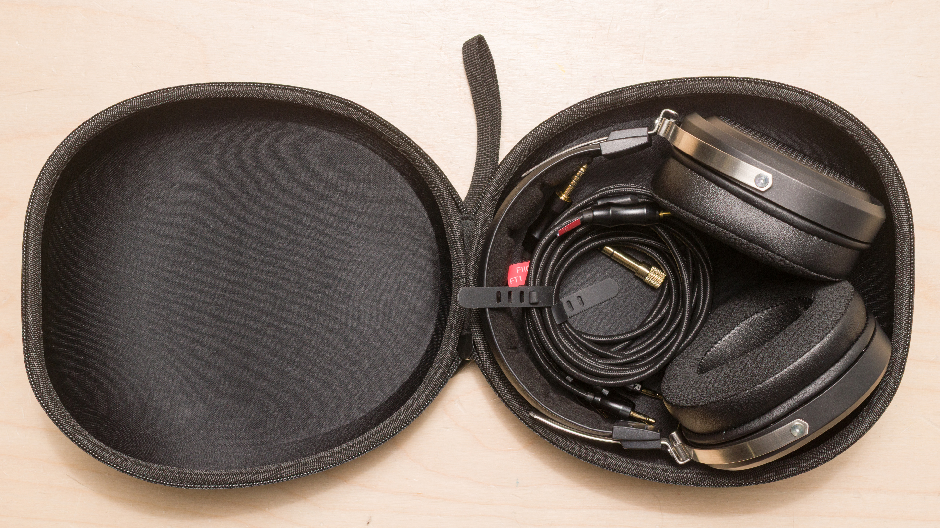 These headphones come with a case that's identical to the one that comes with the FIIO FT1. It's a semi-hardshell design, with a little give to the exterior. It's equipped with a smooth, high-quality zipper with a fabric loop so you can hold it by hand. There are no foam cutouts or padding on the inside to hold the headphones in place, but there's plenty of space to stash cables and accessories.
