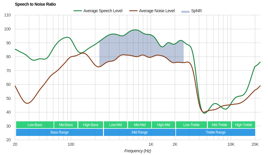 The recording quality of the Fitbit Flyer's mic is about average. The LFE (low-frequency extension) of 226Hz, is decent, indicating that speech recorded or transmitted with it would sound relatively full. The HFE (high-frequency extension) of 2.6KHz however, is mediocre and results in a speech that lacks detail and presence. This would have a small but noticeable negative effect on the intelligibility of speech.