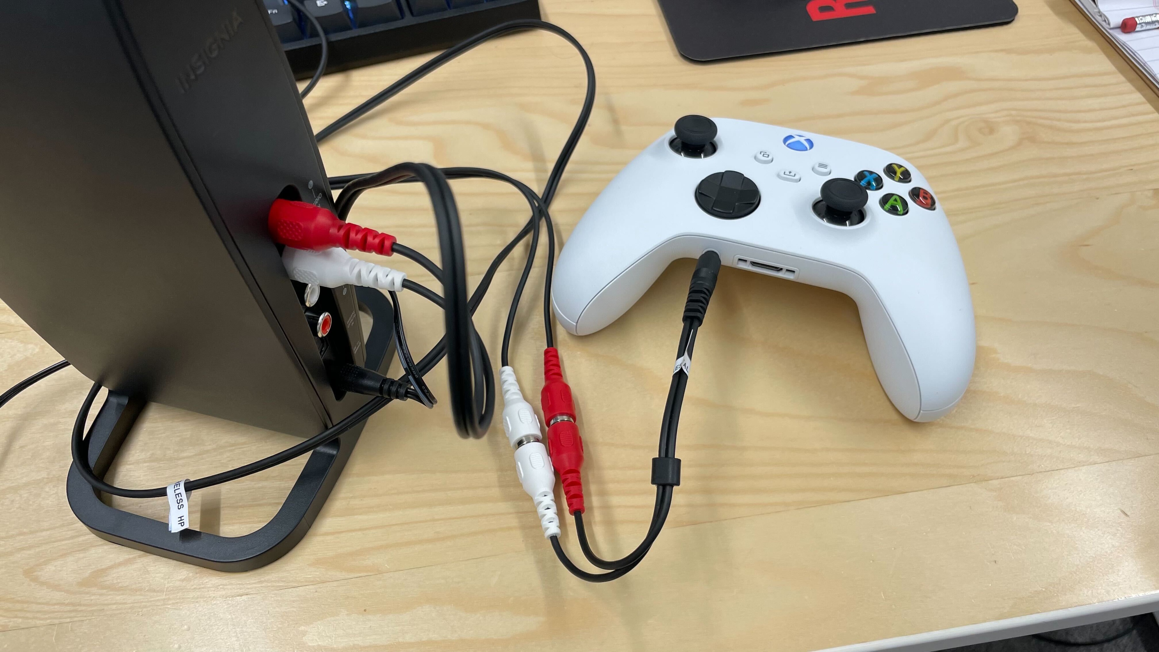 The Insignia Digital Wireless Headphones are TV headphones first and foremost. If you want to connect them to newer consoles, you'll need to use the 1/8" TRS to RCA to connect them to your controller's AUX port. However, they don't have a mic, so you won't be able to chat with others while gaming. In addition, they have an uneven sound profile. While the extra bass can help emphasize sound effects like footsteps, underemphasized treble hurts the clarity and detail of dialogue and instruments.