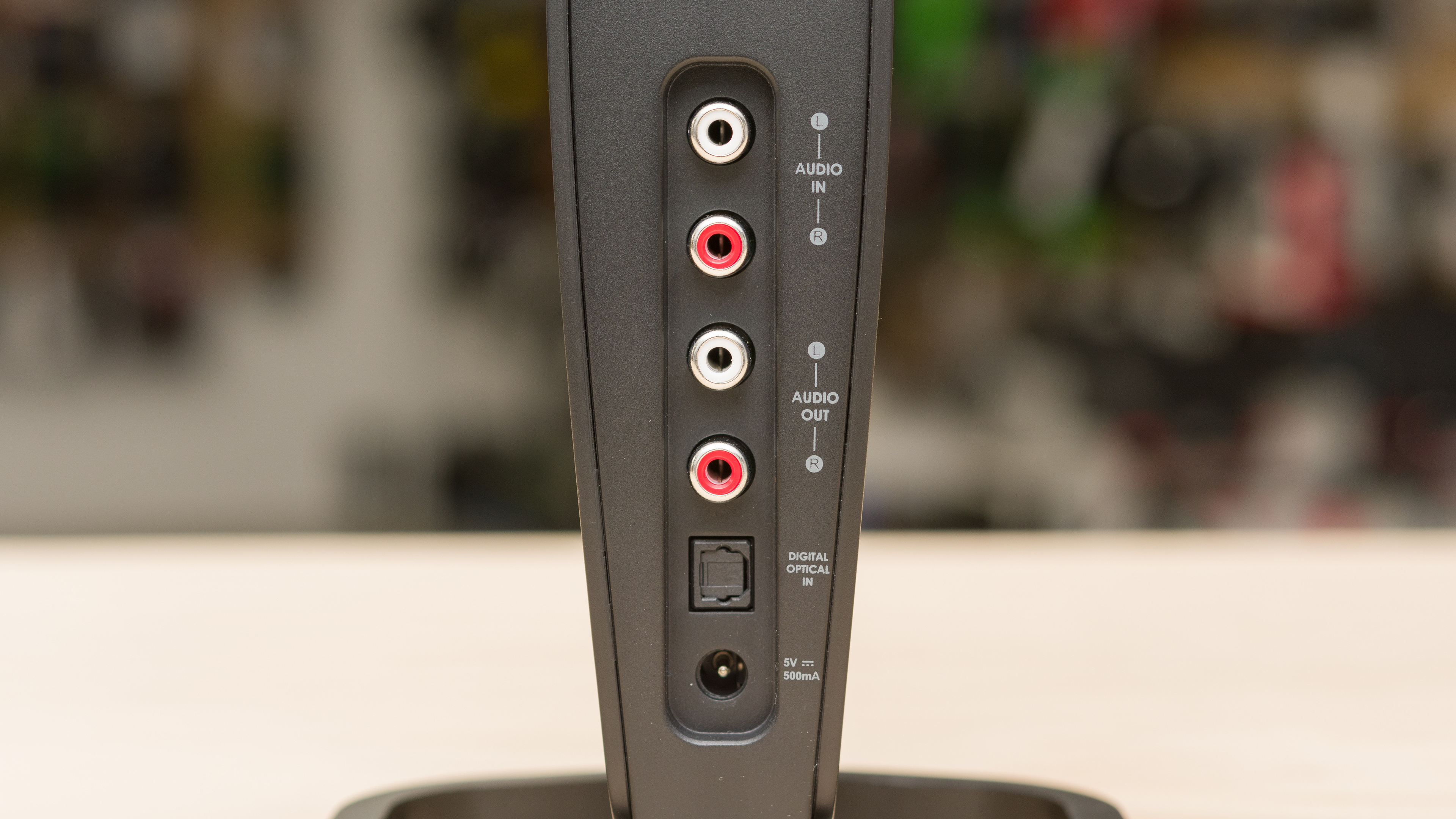 These headphones come with a wireless dock that offers an RCA and optical connection. There's a proprietary charging connection at the top of the dock to allow you to easily charge the headphones when not in use.