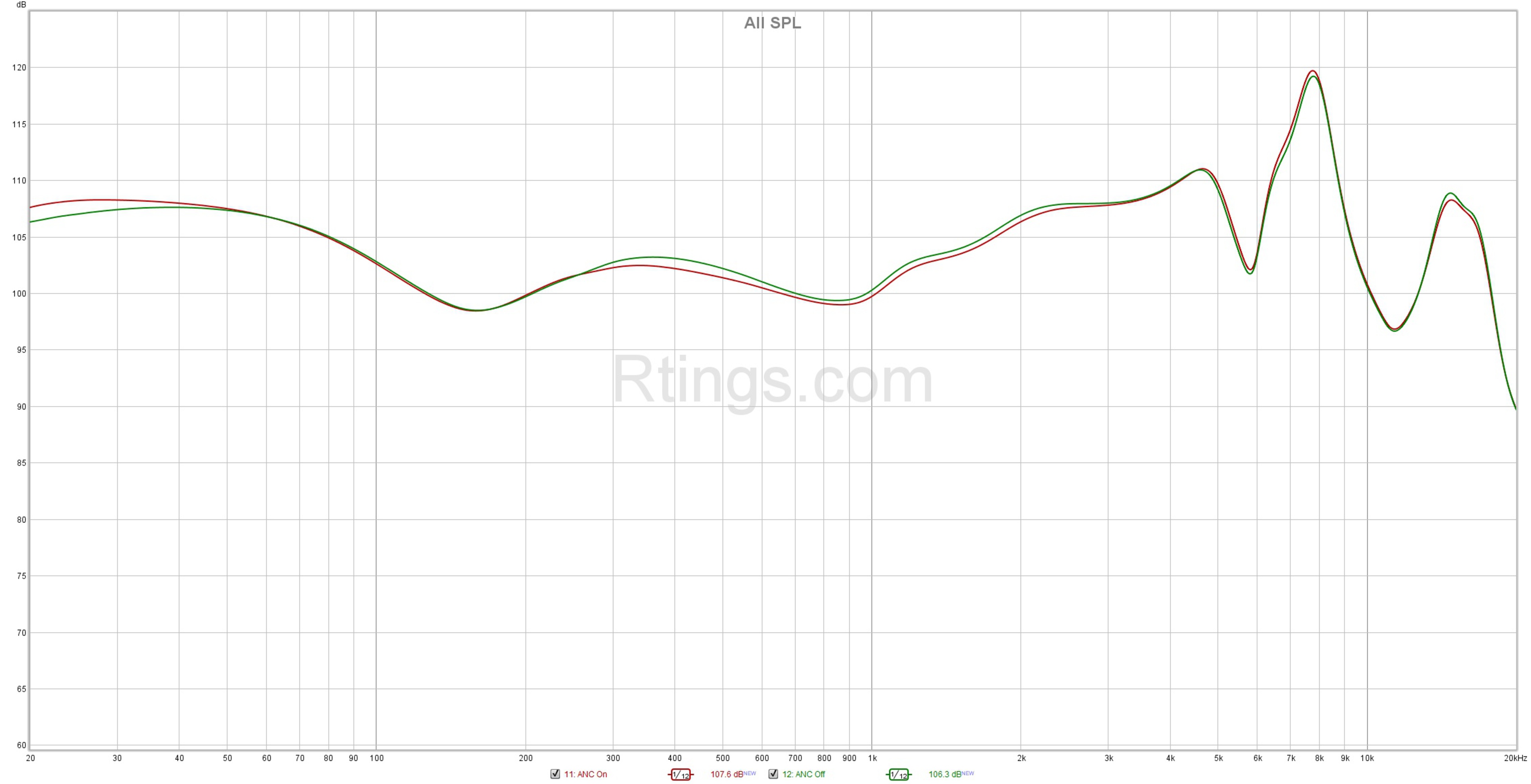 They have a fairly flat default sound profile. Mixes have plenty of rumble and punch in the bass range, and instruments and vocals are present, clear, and detailed. However, sibilants like S and T sounds can sound a bit piercing. Still, these headphones are well-suited for a variety of genres and can also be customized with a graphic EQ and presets in the companion app. These results reflect the headphones' performance with ANC on. Switching it off changes the sound profile slightly. They reproduce more low-bass with ANC on, but there's not a huge difference, as you can see in a comparison here.