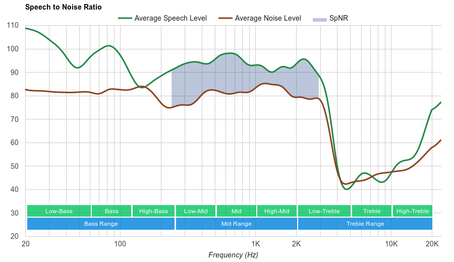 The integrated microphone is mediocre at noise handling. In our SpNR test, they achieved a speech-to-noise ratio of 13dB, indicating that the microphone performs best in quiet environments and may struggle moderate and loud environments.