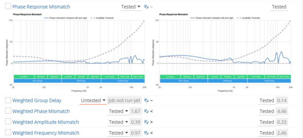 The Klipsch T5 II ANC's imaging performance is excellent. Their group delay falls below the audibility threshold, resulting in tight bass and transparent treble. While the L/R drivers are well-matched in amplitude, there's some mismatch present in phase and frequency response, which can affect the placement of objects like footsteps in the stereo image. It can also be noticeable when listening to regular audio content. However, these results are only valid for our unit, and your experience may vary.