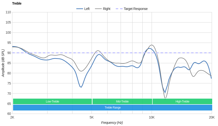 The treble is sub-par. The overall response is rather uneven and consistently under our neutral target by more than 3dB. This means that vocals and lead instruments will lack a bit of detail and brightness, especially when considering the overemphasized upper-bass/lower-mids of these headphones.