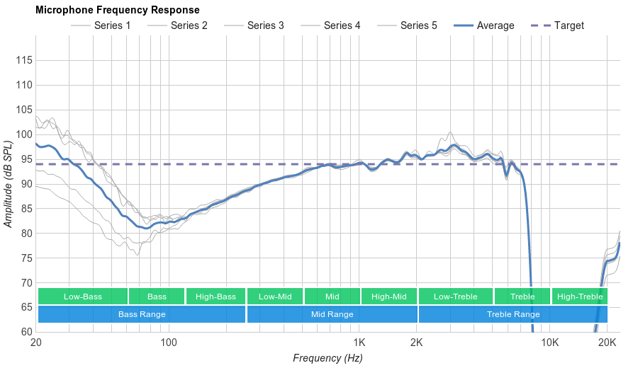 The G930's microphone has a decent recording quality. The LFE (low-frequency extension) of 380Hz suggests a recorded/transmitted speech that is relatively thin. The HFE (high-frequency extension) of 7.2KHz means that speech will have a good amount of detail and clarity to it, but will lack a bit of airiness and brilliance. The response between the LFE and HFE points is very even and balanced.