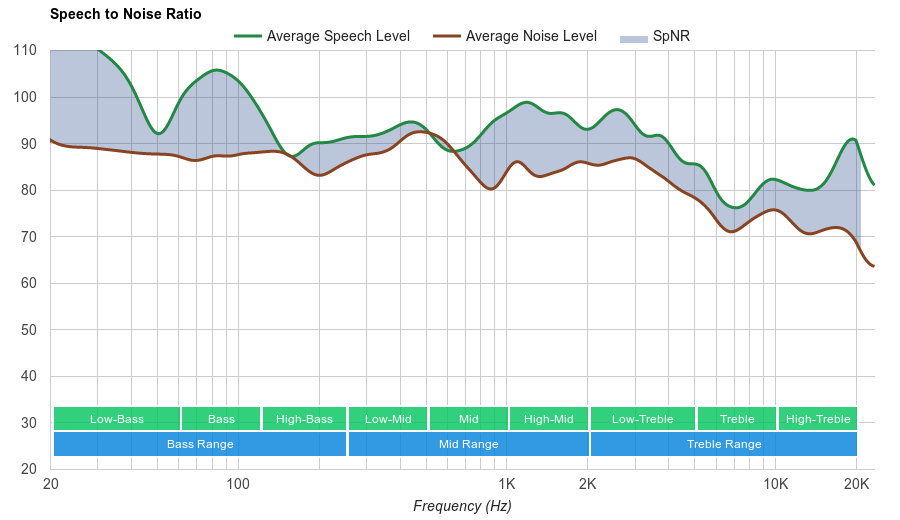 Sub-par noise handling. The microphone achieved a speech-to-noise ratio of 10dB, meaning they aren't good at separating speech from ambient noise.