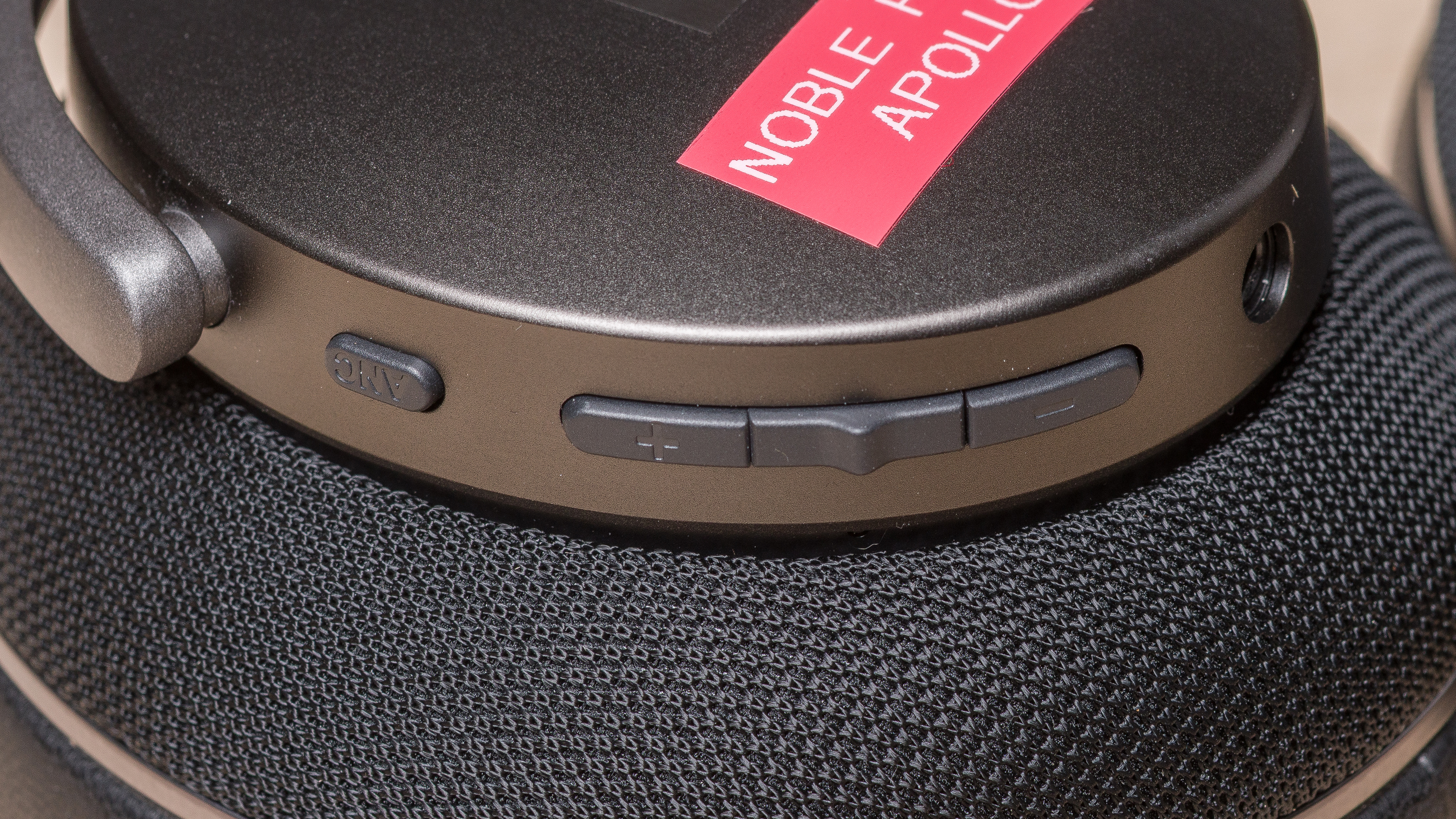 The Noble FoKus Apollo have excellent build quality. Their construction features premium materials, including an anodized aluminum frame, protein leather wrapped memory foam earpads, and a headband that incorporates Alcantara. The hinges and yoke can swivel easily and have tight tolerances without play or wobble. The bottom of the headband is upholstered with branded Alcantara, known for its durability and use in high-contact surfaces like car steering wheels. In terms of control surfaces, the headphones' buttons don't have much wobble and have a satisfying click. While their included cables aren't braided, they have thicker housings and are less prone to tangles.