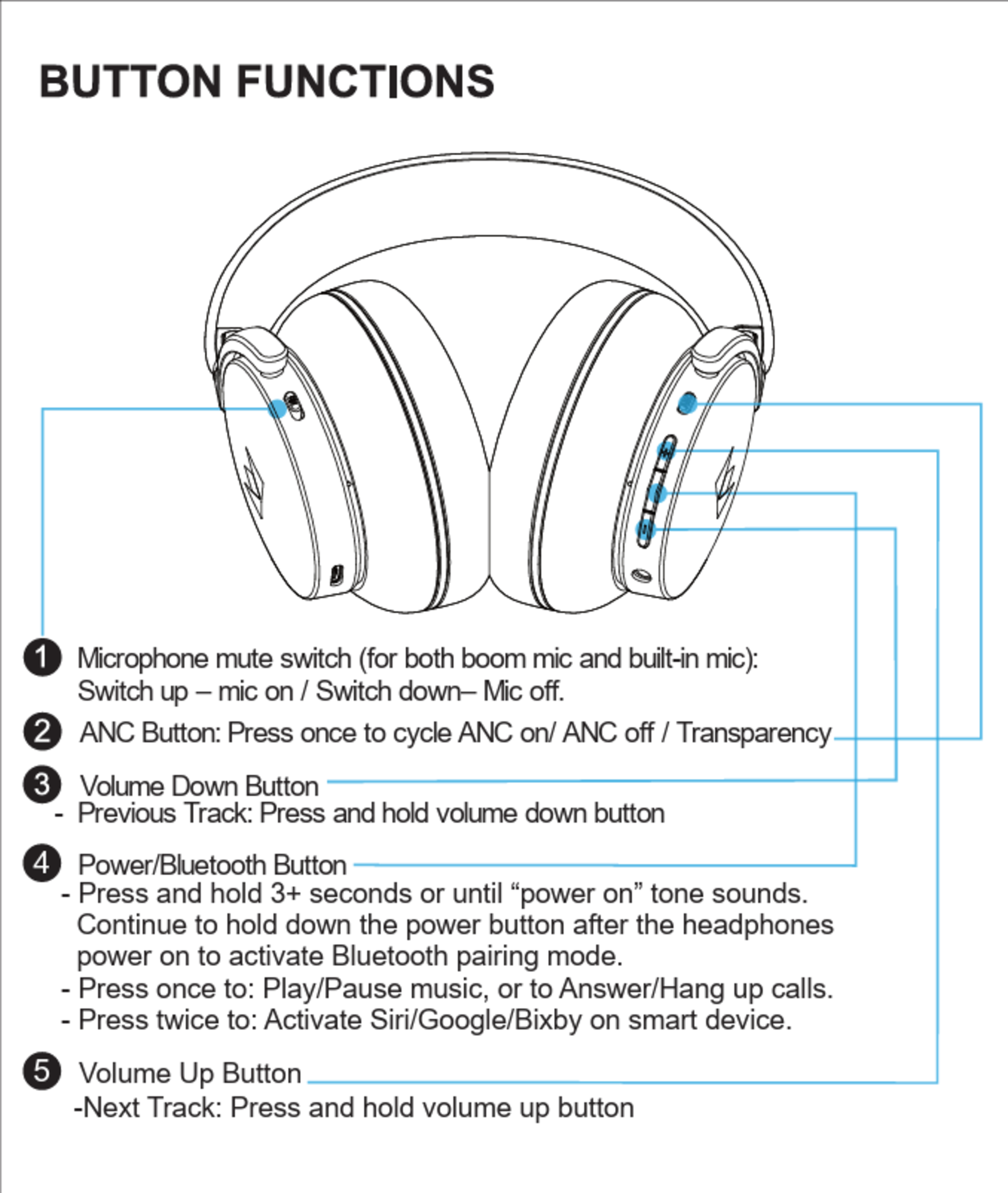 These headphones have great controls. Their control scheme exclusively uses physical buttons, which some users prefer due to the lower likelihood of erroneous inputs. We found them quite intuitive and easy to use, though certain mappings have consequences for overall usability. For example, holding the volume up button cycles to the next song, which means you need to press the volume button multiple times to increase your volume (rather than holding it down, which is common for other control schemes). You also have access to a dedicated ANC mode button and a switch to mute/unmute the microphone.