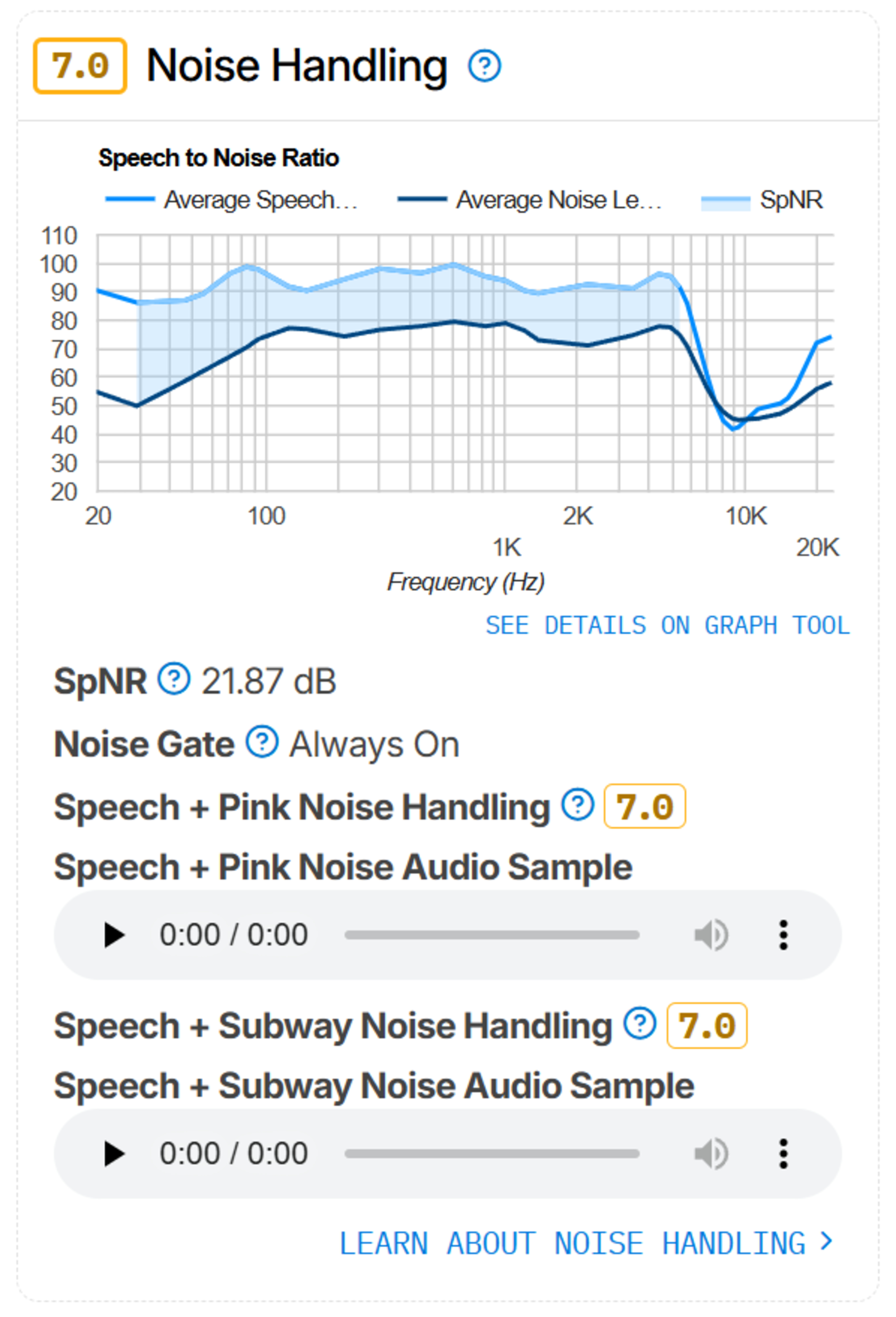 The boom mic's noise handling over Bluetooth is very good. Against both pink noise and subway noise, the microphone system doesn't seem to attenuate noise through software or noise cancelling. Instead, the proximity to your mouth and pickup pattern do the heavy lifting. In practice, your conversation partner will hear your background, but your voice will remain louder and audible even as the train comes to a screeching halt.