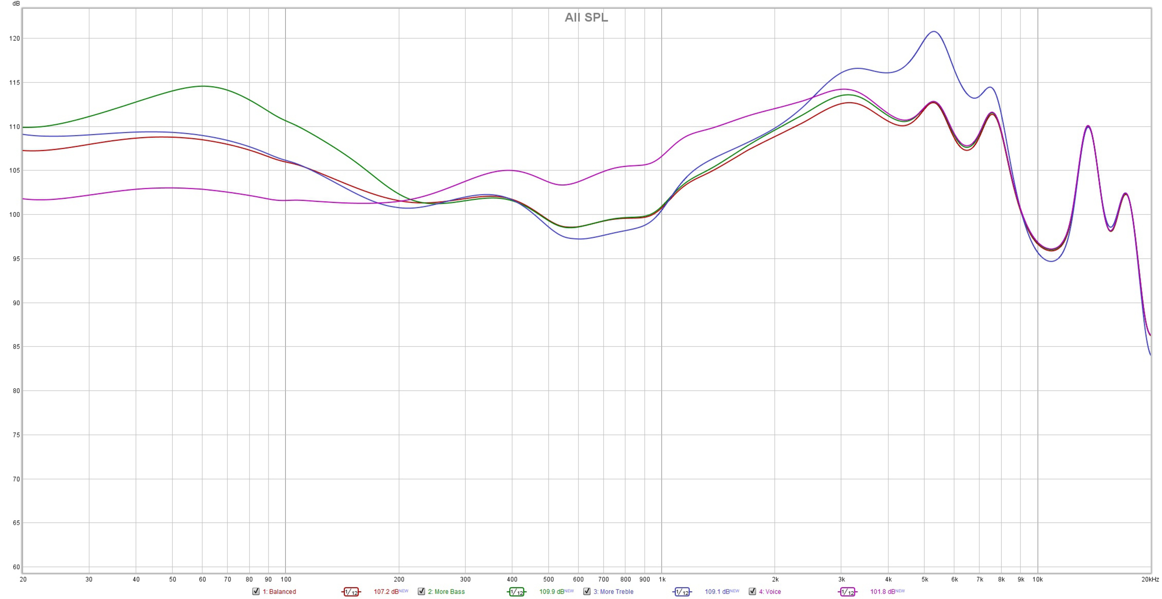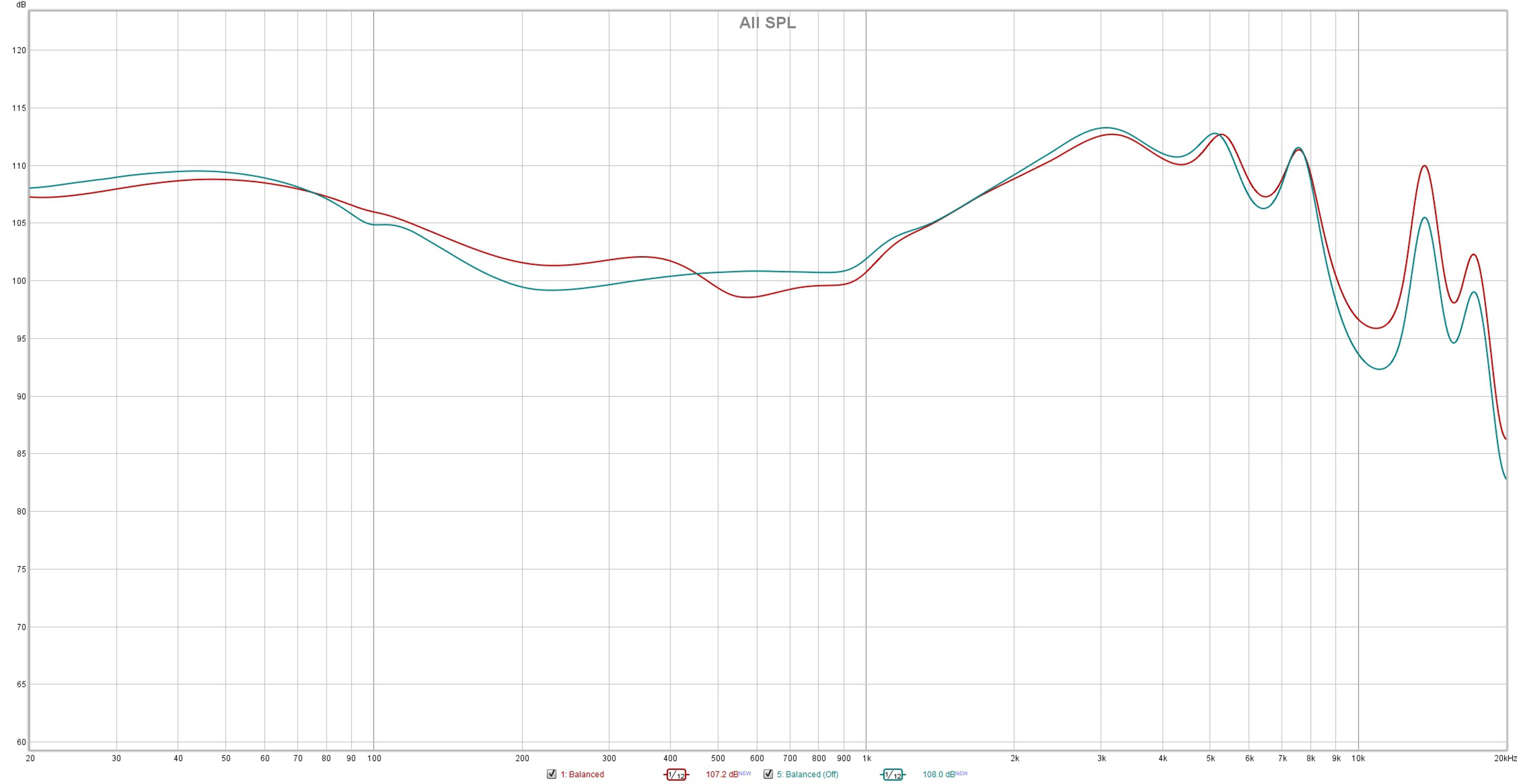 The bass accuracy is fantastic. Due to a fitting issue on our test rig, the graph shows less low bass than there is. Rest assured that the range is well-balanced and ensures tracks have plenty of thump, punch, and boom without overwhelming the rest of the mix.
