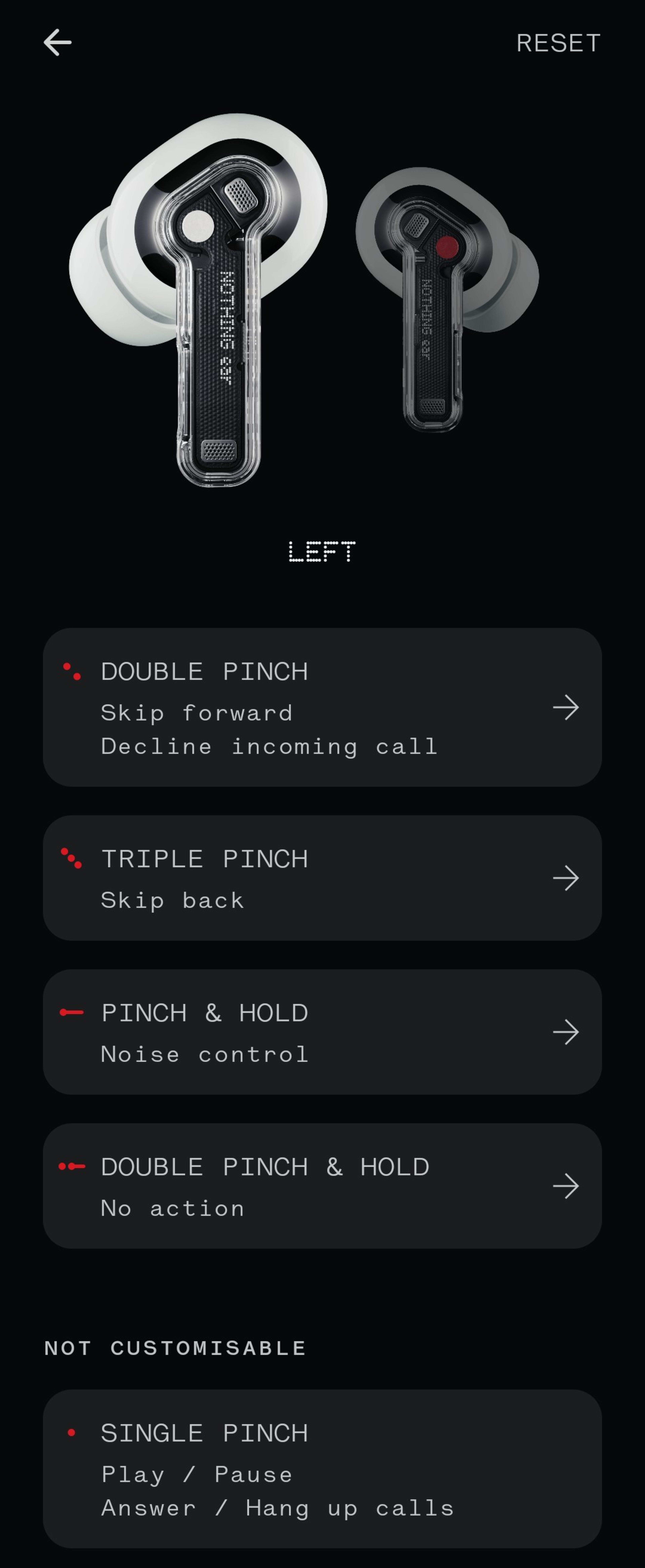 All that said, their control scheme can be viewed here, and they cover most of what you need for listening modes, playback, and calls. Only the noise cancelling is on/off, which requires you to use the app if you want to adjust its strength—that's pretty normal. Like the last generation model, you need the buds in the case to pair the earbuds.