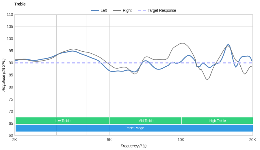 The Plantronics RIG 800LX have alright treble accuracy. There's some overemphasis in the low treble, which makes lead instruments sound sharp and harsh. There's also a bit of brightness coming from the mid-treble.