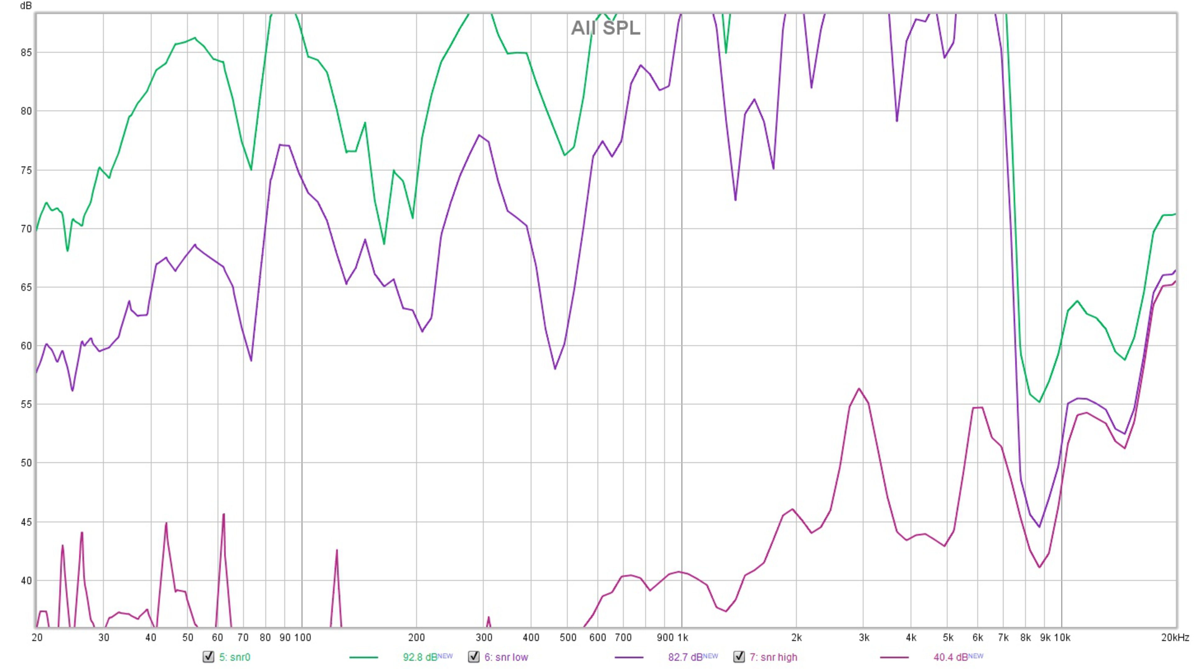 The Razer Barracuda's weighted harmonic distortion performance is good. There are a couple of peaks at normal listening volumes, namely in between the low to mid-bass and again in the low to mid-treble. It can be hard to hear with real-life content, though. Most of the range falls within good limits, so your audio sounds fairly clean.