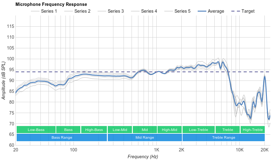 The microphone has an excellent recording quality. Low-frequency extension is at 90Hz, which is great, and the response is also flat up to 7KHz. However, the drop in frequency response above 7KHz will negatively affect the presence and airiness of recorded voice. Overall, speech recorded or transmitted with this mic will be full, natural, and easily understandable.