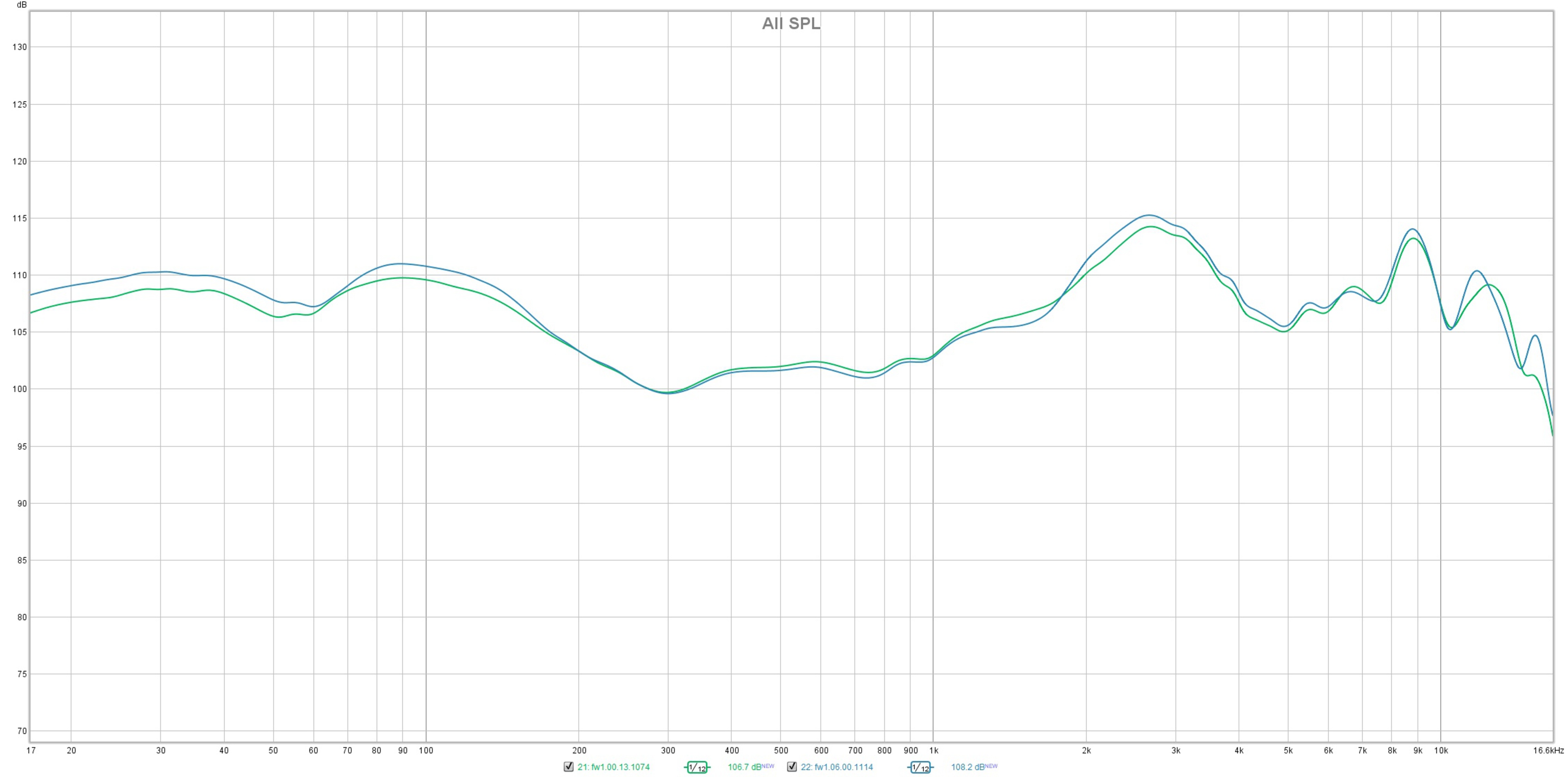 We've updated these headphones to firmware 1.06.00.1114, and you can see a comparison between our original frequency response and one measured using the new firmware here. Although there's minor deviation between the original and new passes, this is due to the frequency response consistency of the headphones themselves rather than the firmware update, as they're prone to inconsistencies in bass and treble delivery due to fit, positioning, and seal.