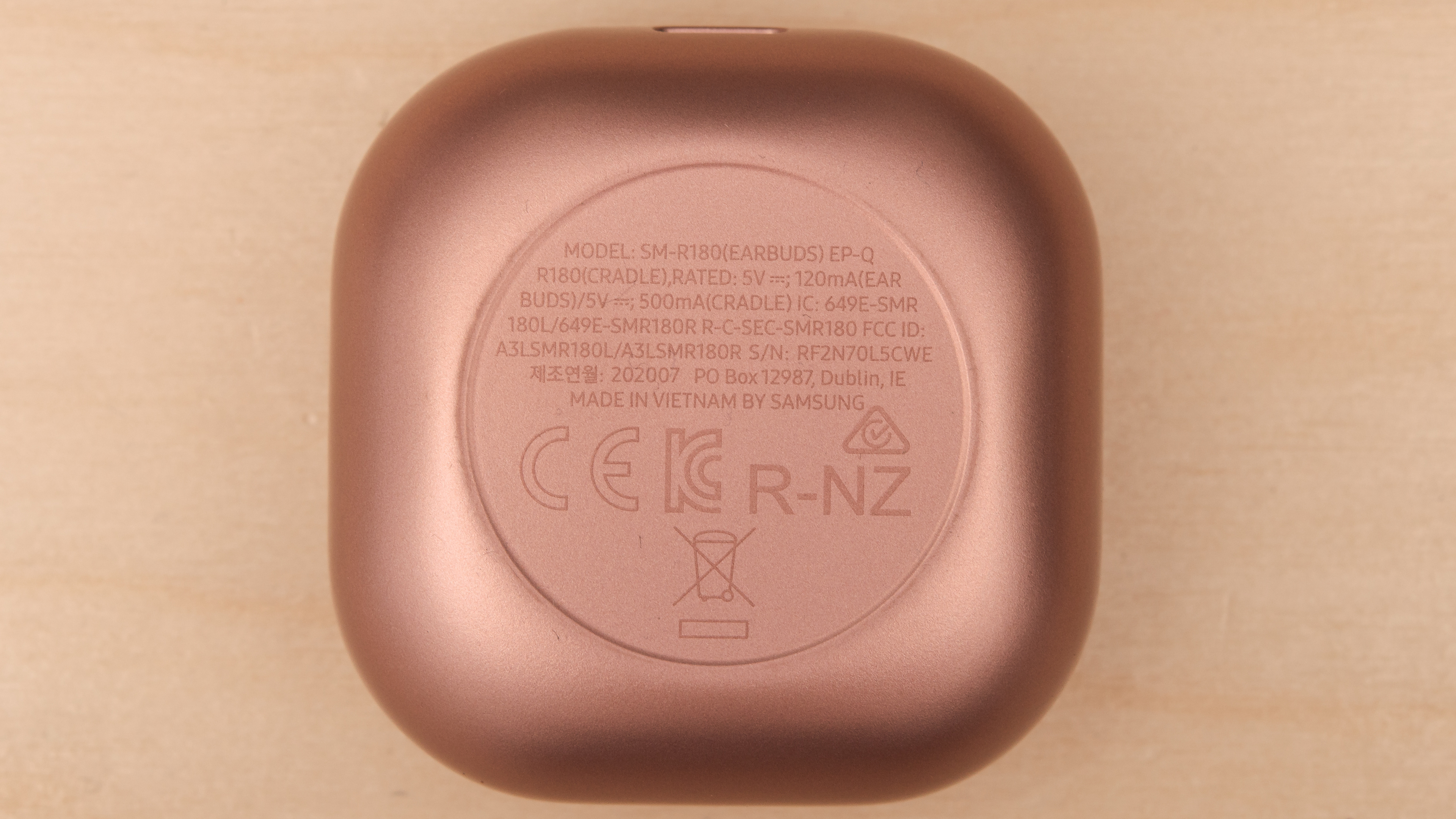 The Samsung Galaxy Buds Live come in several color schemes, although some are no longer available: 'Onyx', 'Mystic Bronze', 'Mystic White', 'Mystic Black', 'Mystic Red', and 'Mystic Blue'. We tested the SM-R180NZNAXAR model, which comes in 'Mystic Bronze'; you can see their label here. We expect the other variants to perform similarly.