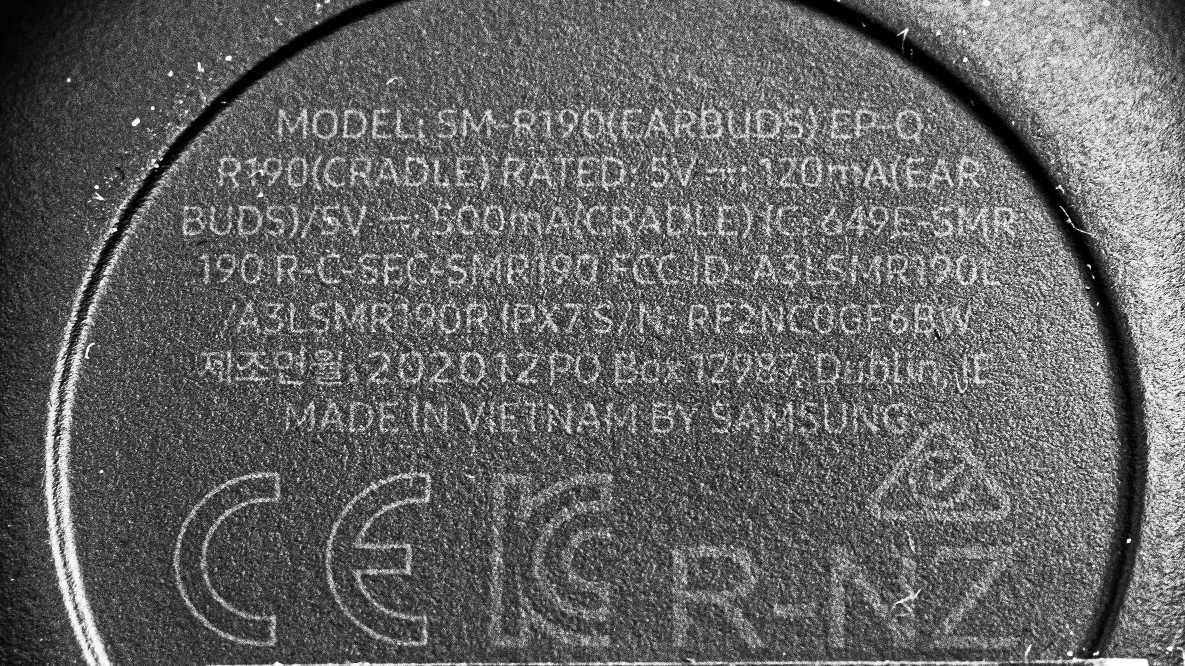 The Samsung Galaxy Buds Pro come in four color variants: 'Phantom Black', 'Phantom Silver', 'Phantom Violet', and 'Phantom White'. We tested the Phantom Black variant, and you can see their label here. However, we expect all color variants to perform similarly to our model.