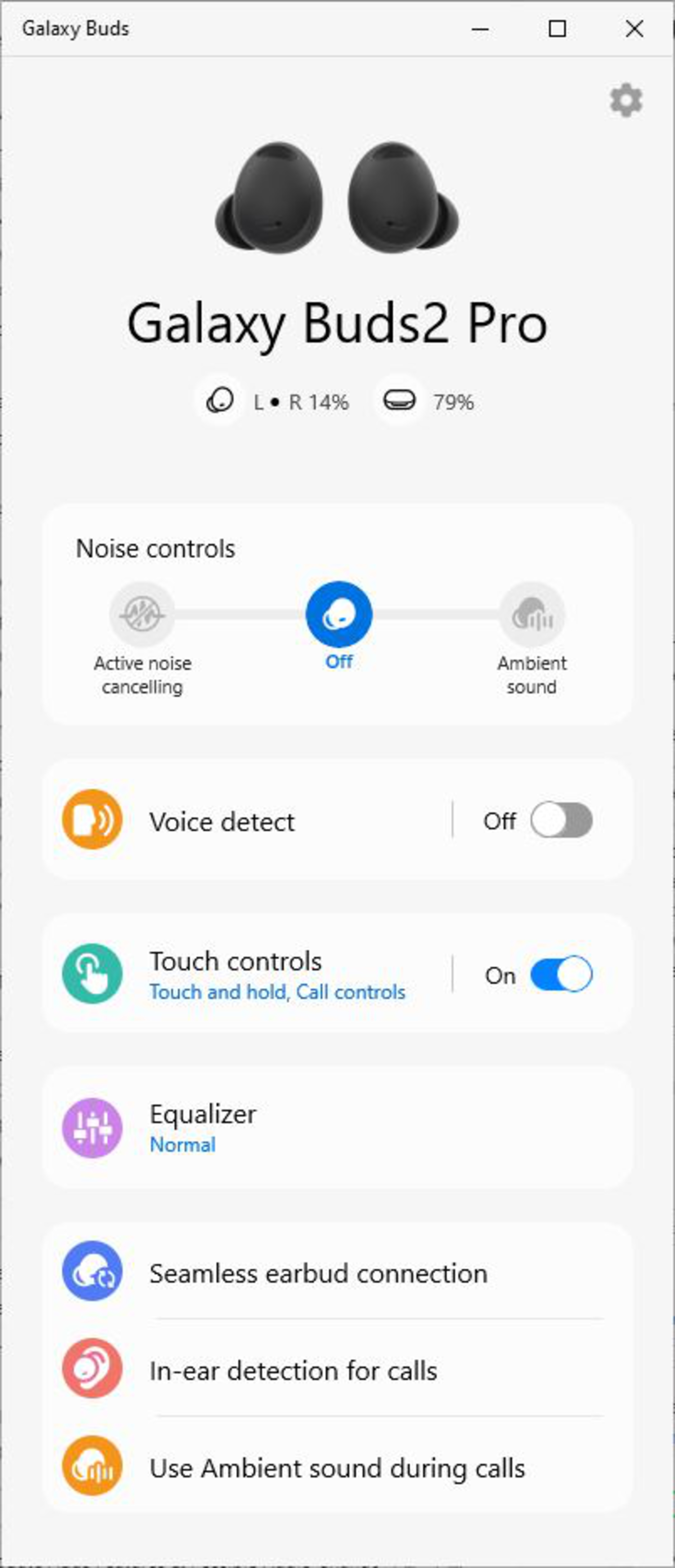 In addition to the Samsung Wearable app, you can also access the Galaxy Buds app on Windows. It offers many of the same features as the mobile app, like EQ presets, control remapping, and noise control. However, this app doesn't have a low latency mode.