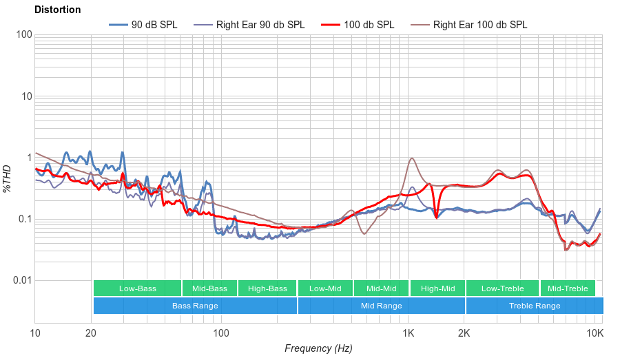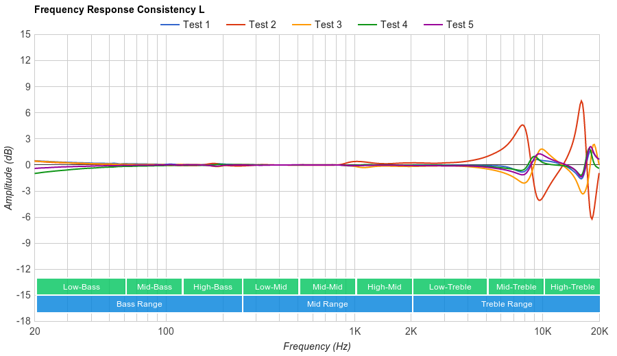 They have an excellent frequency response consistency. If the user can achieve a proper fit and an air-tight seal using the assortment of tips that come with the headphones, they should get consistent bass and treble delivery every time they use the headphones.