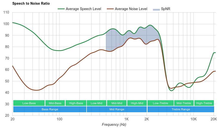 The recording quality of the mic is sub-par. The LFE (low-frequency extension) is at 494Hz, resulting in noticeably thin speech. The HFE (high-frequency extension) of 3.3KHz, indicates that speech recorded/transmitted with this microphone will sound muffled and lacking in detail. However, it would still be decently understandable since speech comprehensibility is mostly dependent on the 500Hz-4kHz range.