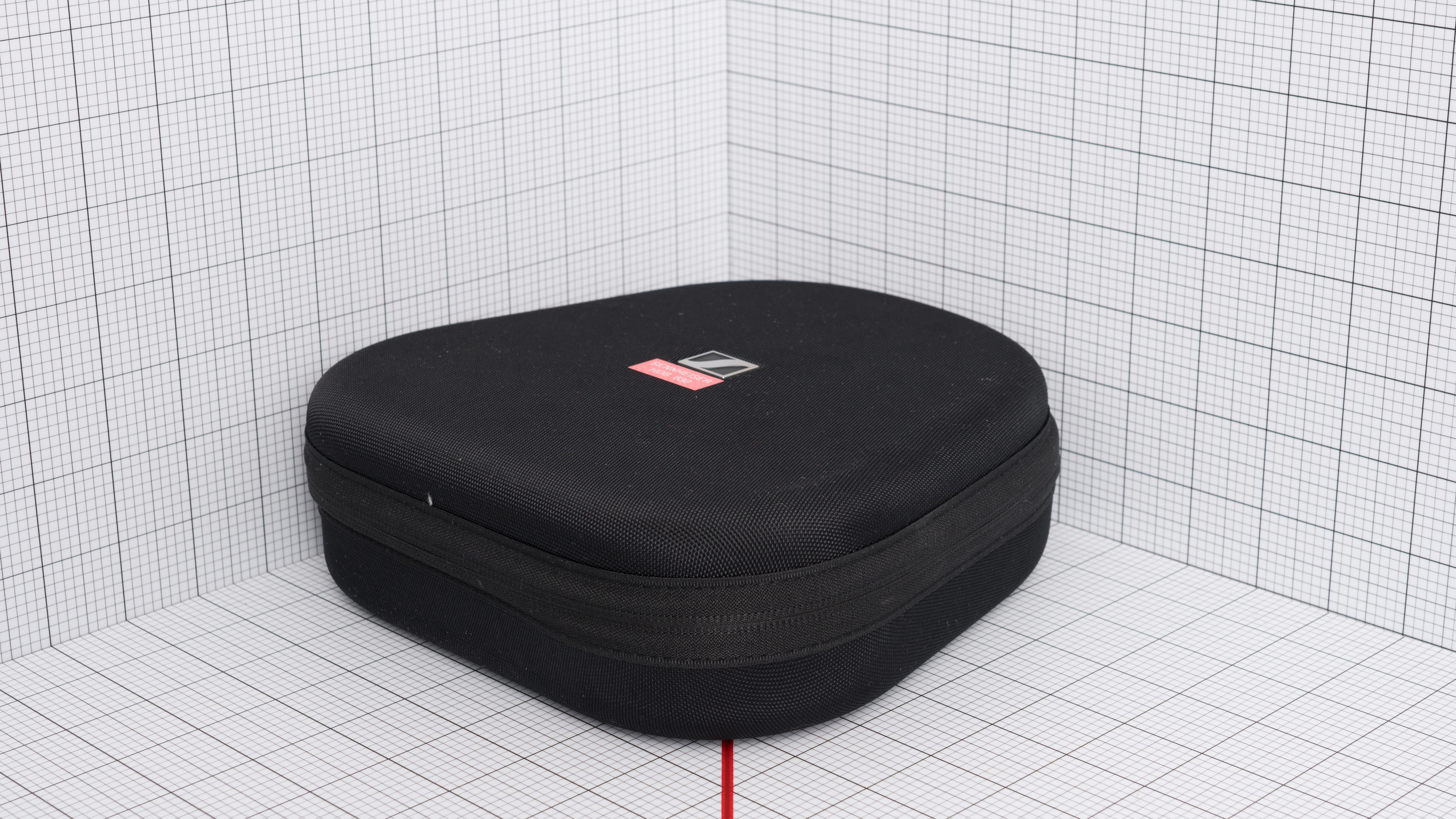 These headphones have a great, well-made case. It features a hard-shell structure with a fabric-covered exterior that has a slight amount of give, offering solid protection without feeling overly rigid. Inside, the case uses custom-molded cutouts to securely hold the headphones, along with dedicated spaces and pouches for cables, dongles, and other accessories. The interior is lined with a soft, velvet-like material, and the pouches use tight drawstrings to keep everything from shifting around in transit. The case fully zips closed for a secure seal and includes a carrying strap, but its large size makes it better suited for a large backpack or airplane carry-on rather than everyday transportation.