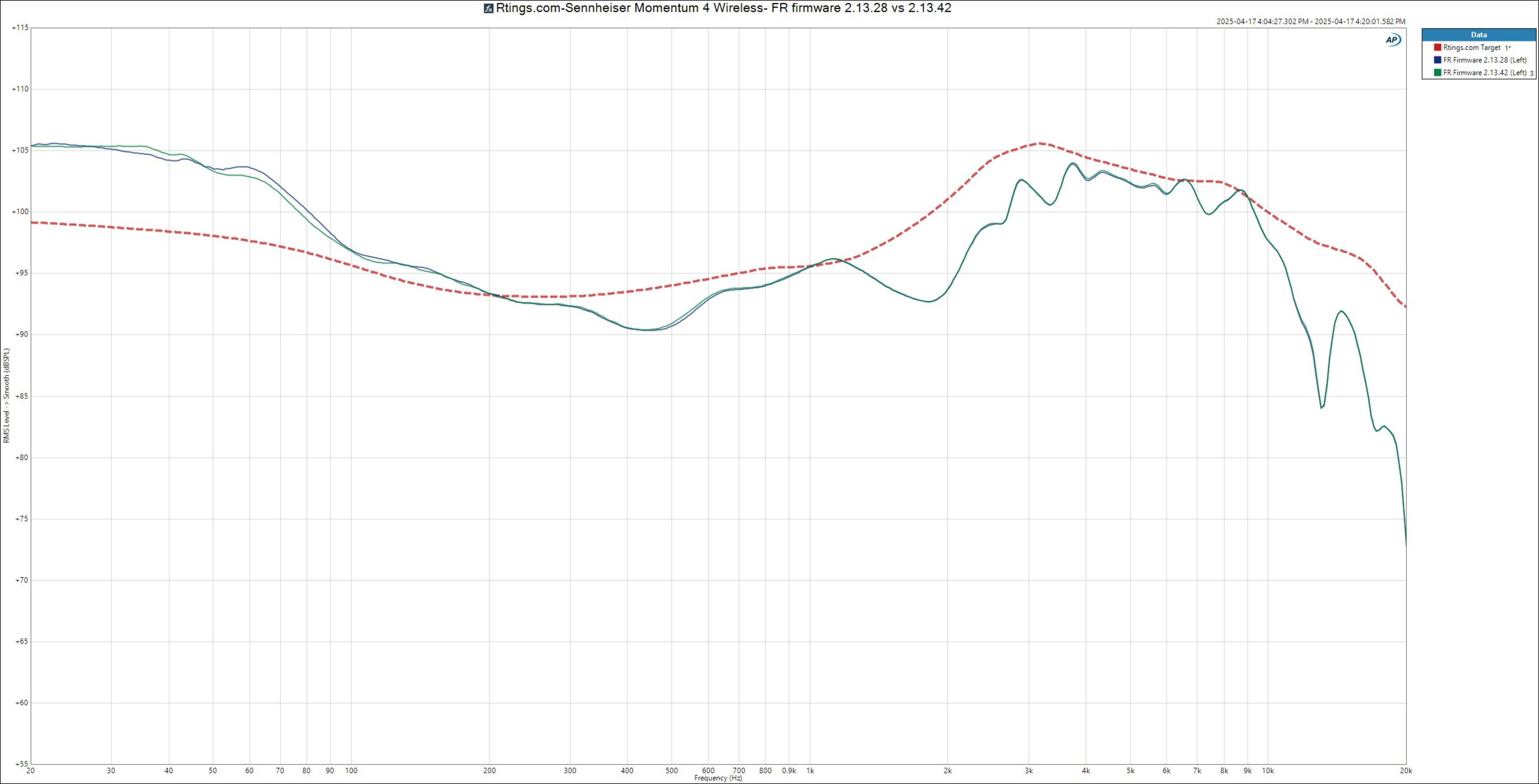 As of firmware 2.13.42, these headphones sound slightly different with ANC turned on or off, but the latest firmware update hasn't changed their sound. The headphones also produce noticeable white noise when powered on (regardless of their ANC setting); while this is common for noise cancelling headphones due to their microphone systems, their noise floor is on the higher end of products we've tested. It's worth noting that sensitivity to white noise varies from person to person, and the noise floor will be masked by audio playback.