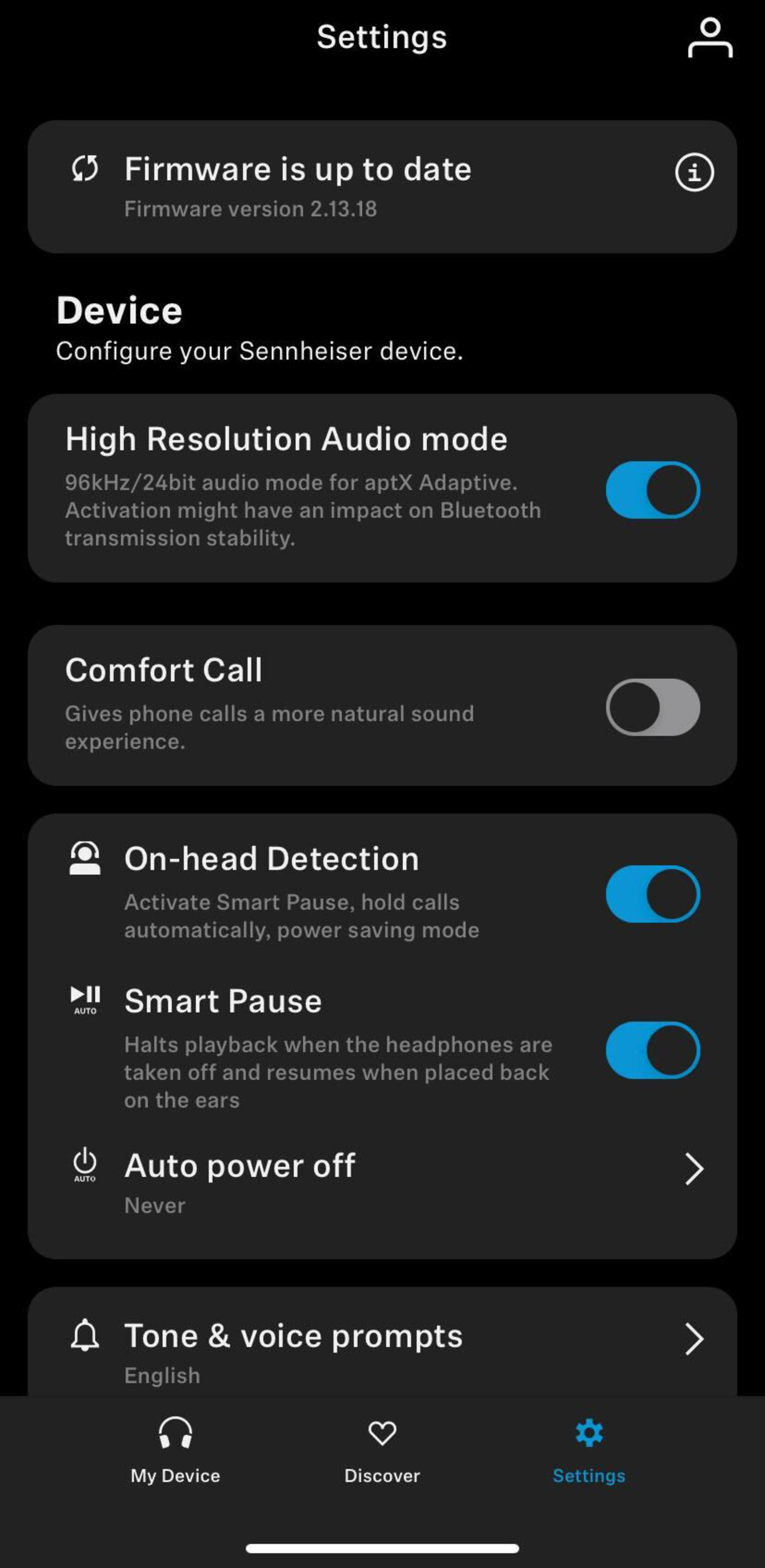 These are the settings used to test the Sennheiser MOMENTUM 4. Our results are only valid when used in this configuration.
