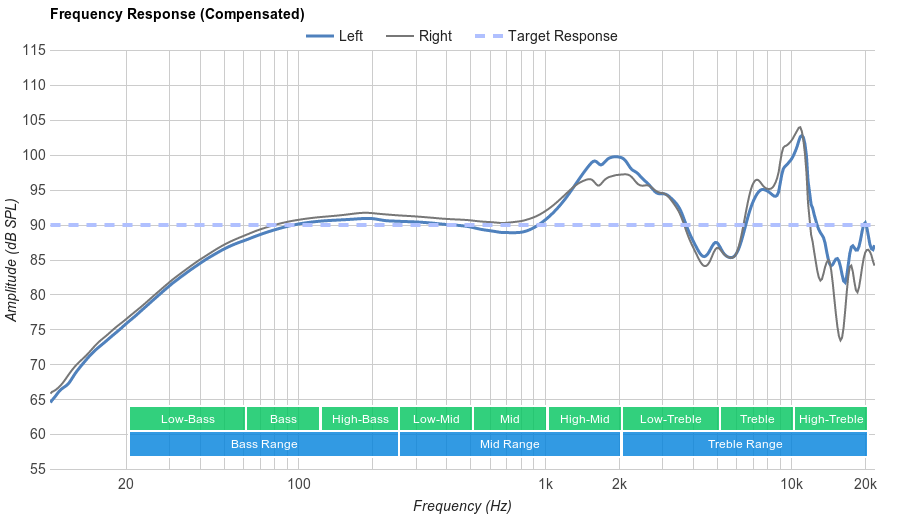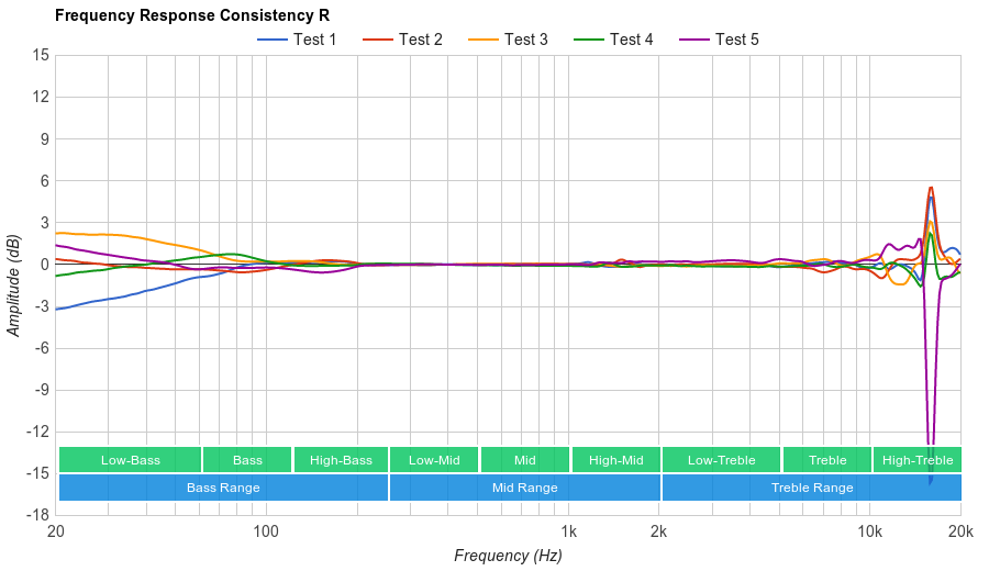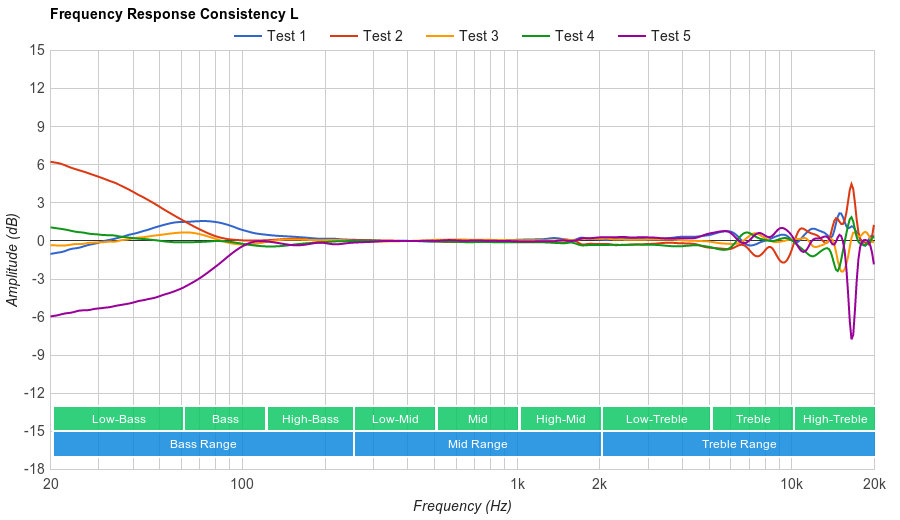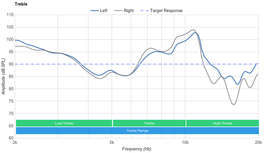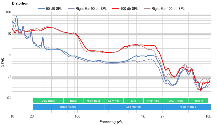 Very good leakage results. The leakage happens only in the treble range, with its peak around 6KHz. The overall level of leakage is also quite low.