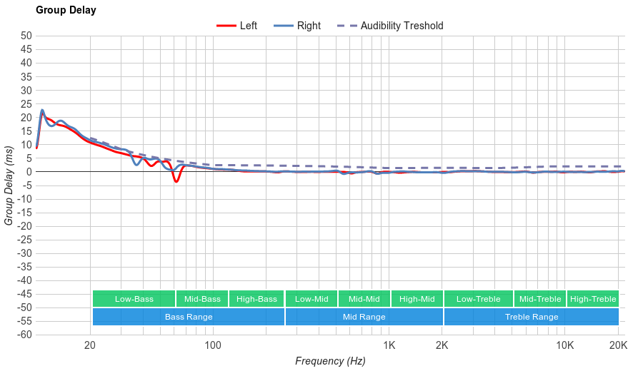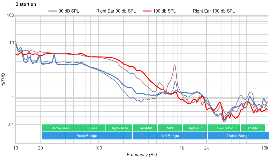 Very good Bass Range performance. Low-bass is extended down to 20Hz, which is excellent. However, the response shows a bit of tilt towards high-bass with up to 4dB of overemphasis at 150Hz. The makes the sound of these headphones slightly boomy.