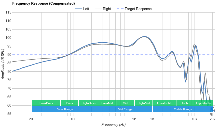 These headphones have a sub-par bass accuracy. Low-bass, which is responsible for thump and rumble, is lacking significantly. The bass has a tilt towards high-bass, but mixes still lack body and warmth.