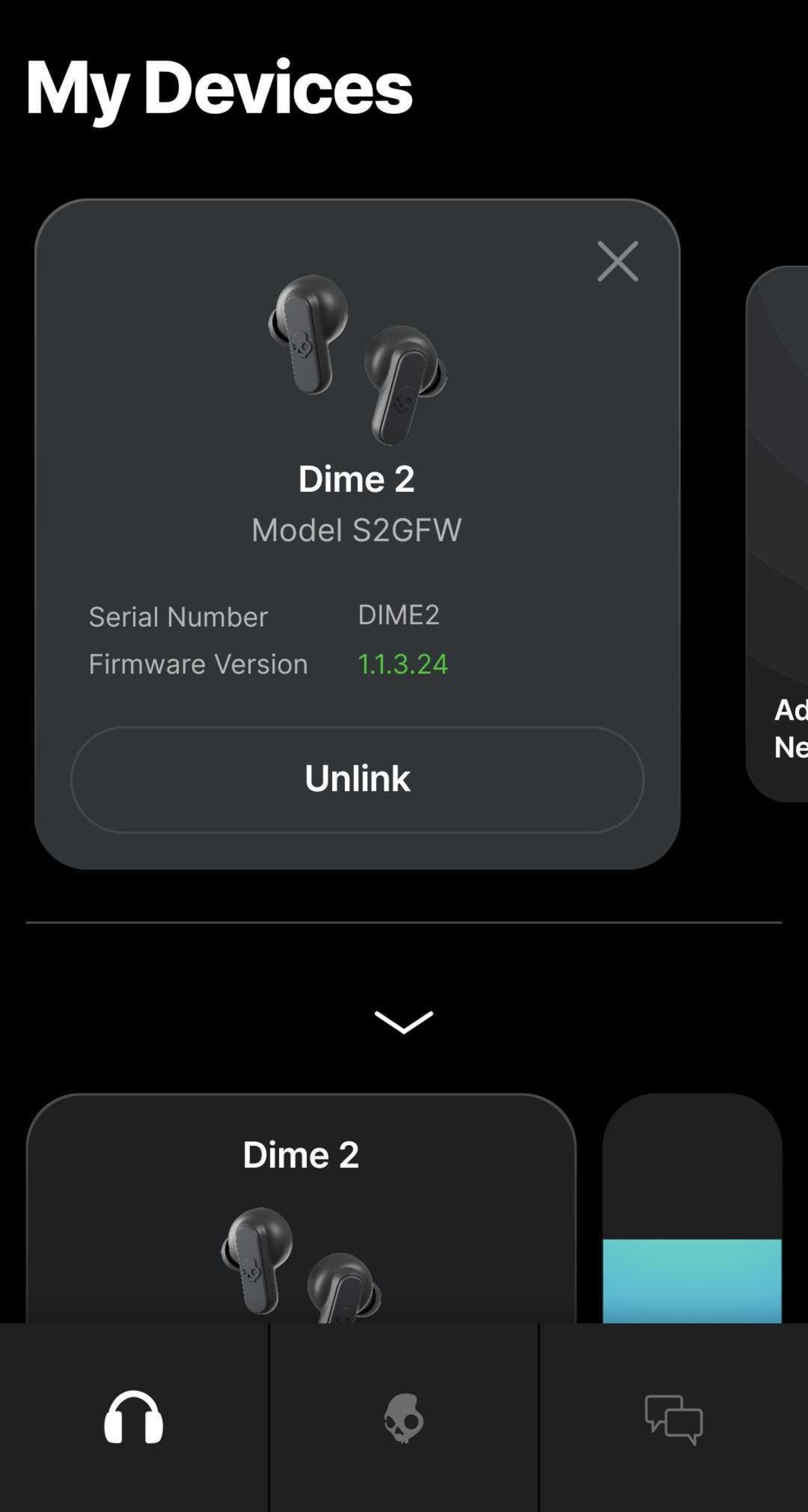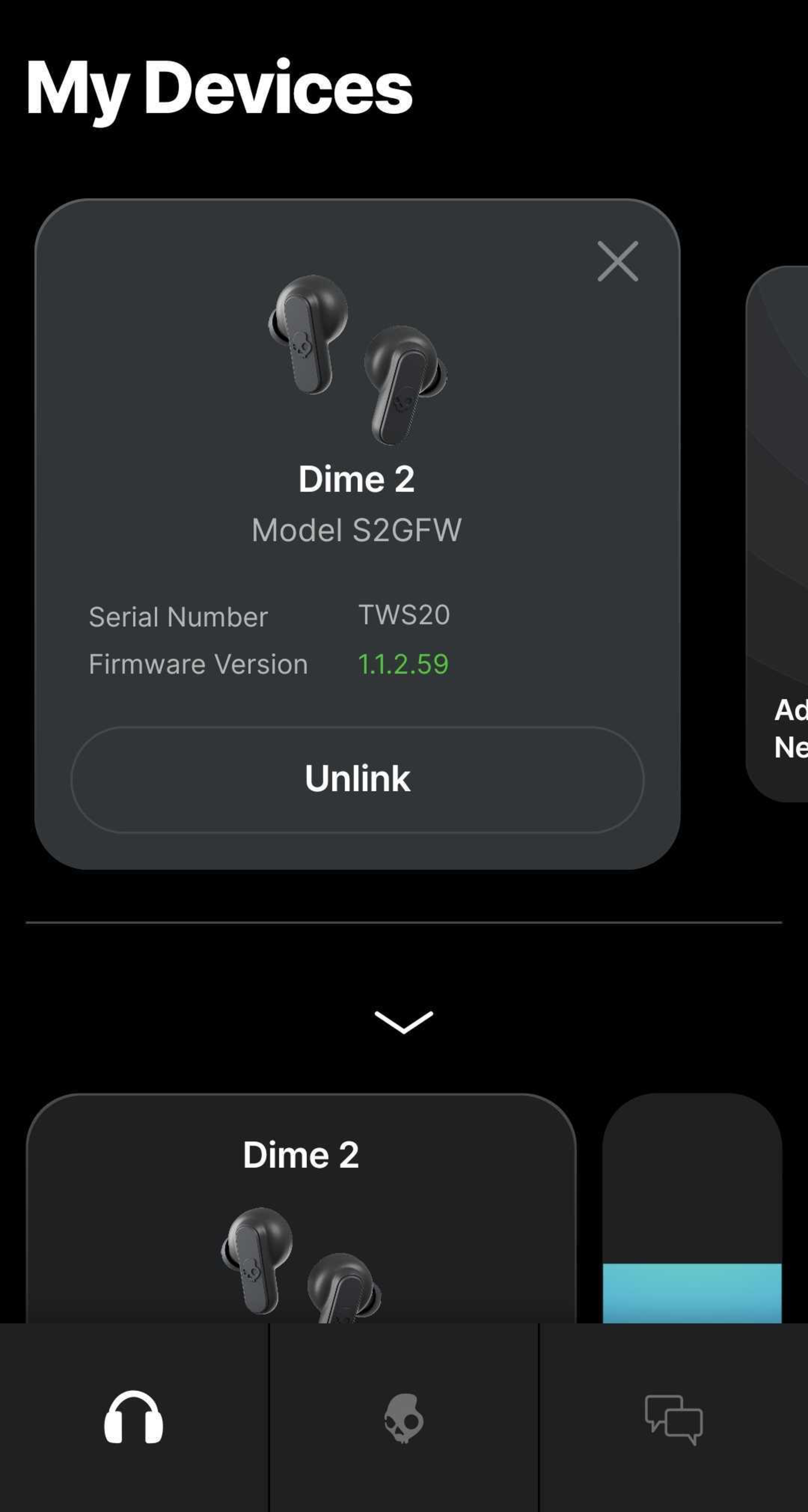 Update 03/02/2022: Although Skullcandy advertises that these headphones don't support the Skullcandy app, we could connect them to the app. However, it recognizes the buds as the Skullcandy Dime 2 True Wireless, even though the firmware version and serial numbers are different depending on if the first-gen or second-gen is connected to the app. It's also not possible to rename the first-gen in the app. As a result, we have updated our review.