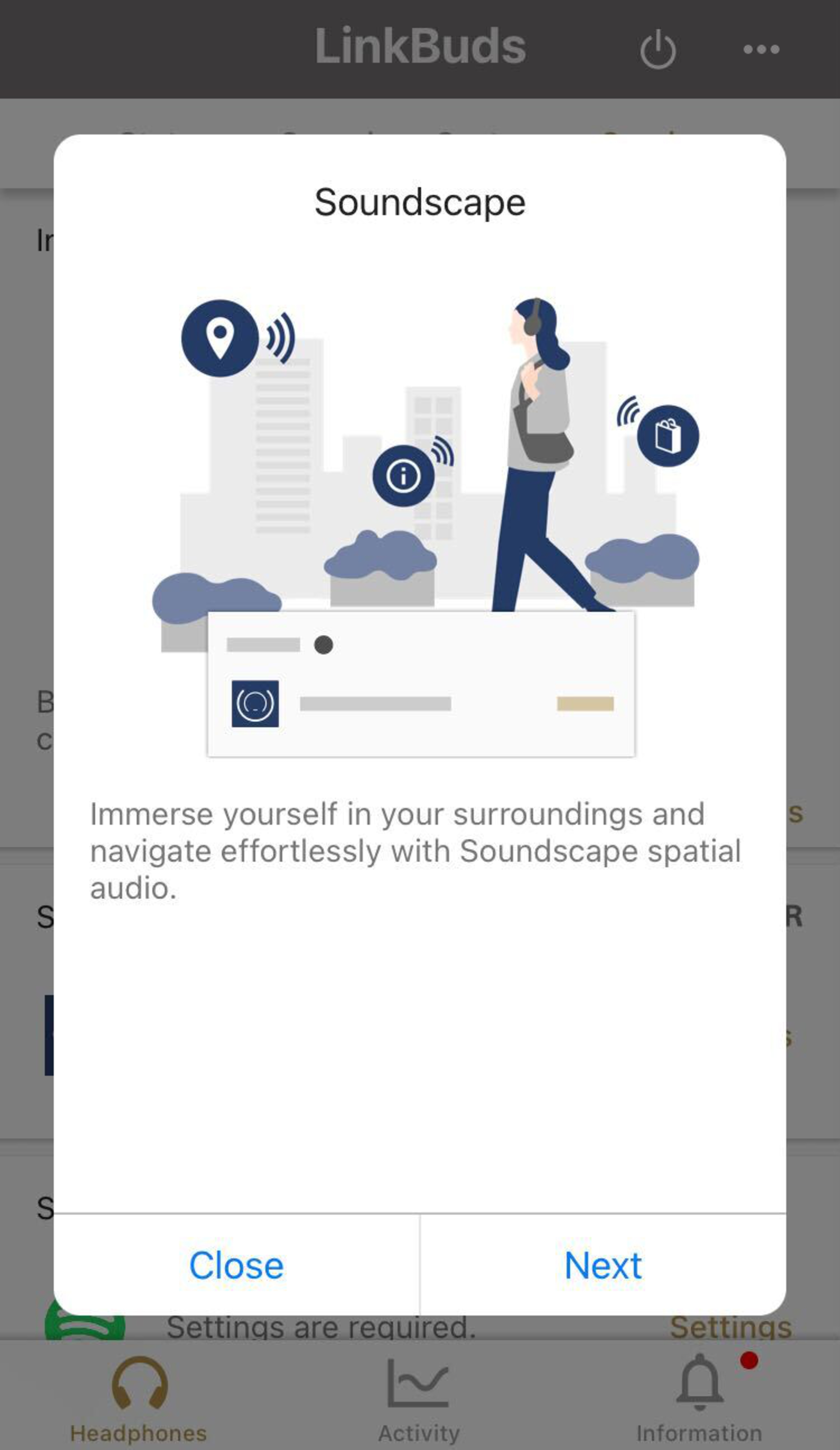 The Sony LinkBuds have a great app. It has a graphic EQ and a few presets like 'Bass Boost' and 'Relaxed' that you can use to customize the sound profile. You can also set up head tracking for the 'Soundscape' feature, which the manufacturer advertises to help you navigate with audio cues that seem to "come from" a destination, based on the position of your head. It can also give you audio prompts to indicate points of interest, like an intersection or building name, as you walk by. You need to download the separate 'Microsoft Soundscape' app to use it, though.