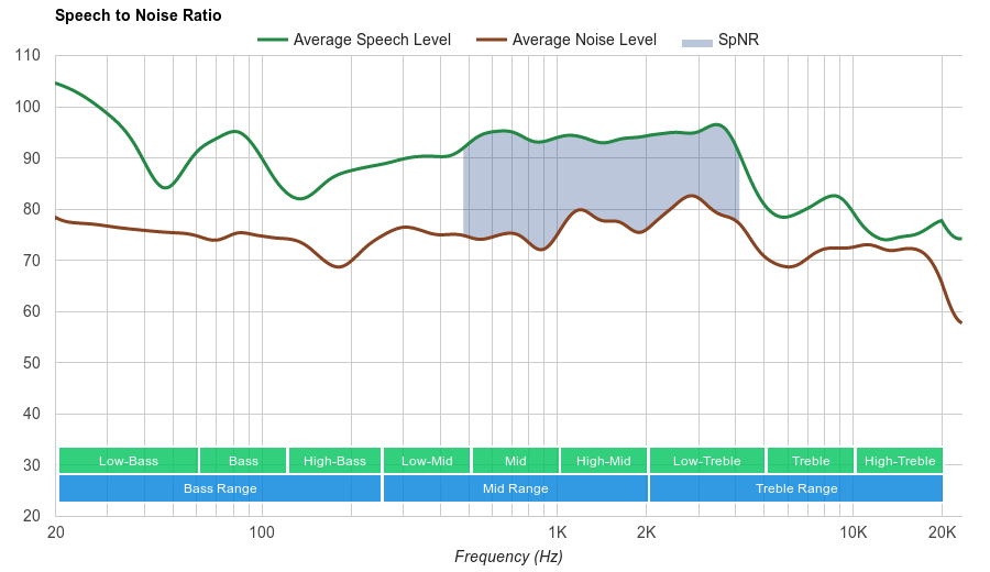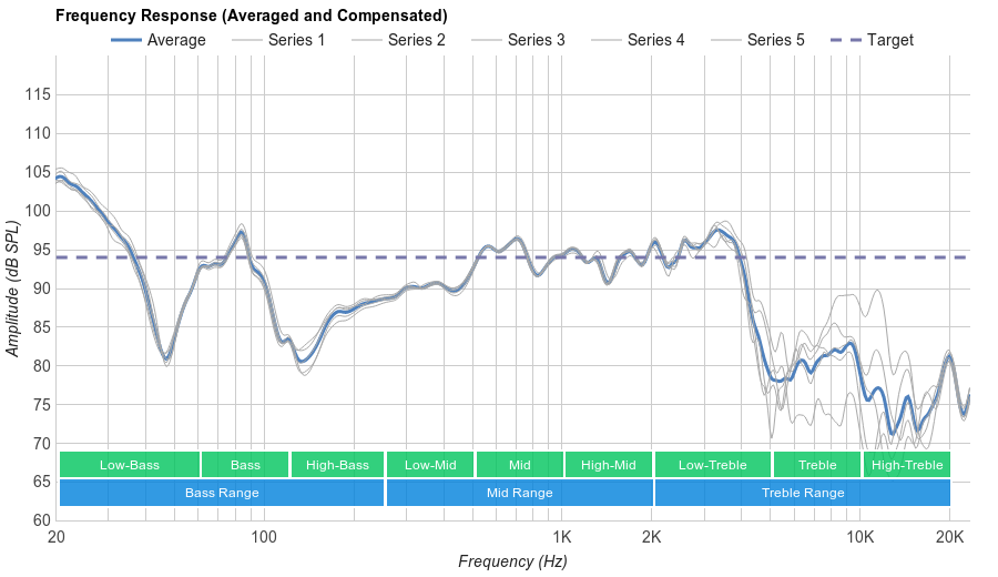 The mid-range performance is excellent. Low-mid is underemphasized by 1.5dB which thins out vocals a little bit, but it also creates more room for punch in the bass range. Mid-mid and high-mid are nearly flawless and within 0.7dB of our neutral target. Overall, the mid-range of the Sony is clear and well-balanced, which is quite important for vocals.