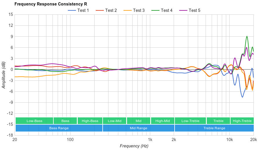 They have great frequency response consistency. You'll experience consistent audio delivery regardless of your face shape or whether you have long hair or wear glasses. That said, bass delivery varies slightly depending on your characteristics. There isn't much deviation between reseats, so your experience won't vary even if you have to reseat the headphones after a bathroom break.