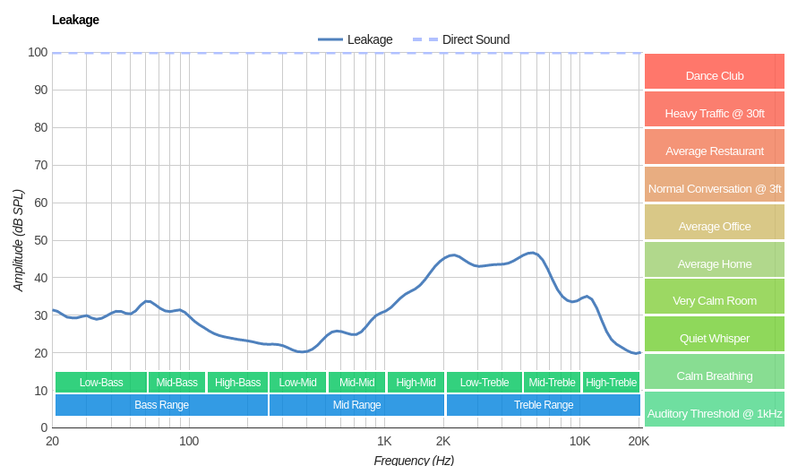 The Sony WF-1000X's leakage performance is great. Like most other closed-back in-ears, a significant portion of the leakage is a narrow range in the treble section. The level of the leakage is quiet as well. This makes the leakage of these headphones barely audible, even at loud volumes.