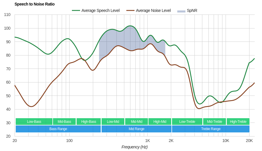 Disappointing recording quality. LFE (low-frequency extension) is at 240Hz, indicating a thin sound. The HFE (high-frequency extension) of 1.7KHz means that speech recorded/transmitted with the mic of the Sony WF-1000X will sound muffled and lacking presence. This will hurt the intelligibility of recorded/transmitted speech.