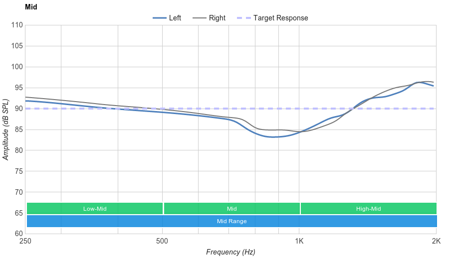 The mid-range performance of the Sony WH-1000XM2 is good. Low-mid is flat but with a negligible tilt favoring lower frequencies. The bump in high-mid brings and vocals/leads slightly to the front of the mix. Overall, the mid-range is slightly more forward sounding than that of the MDR-1000X.