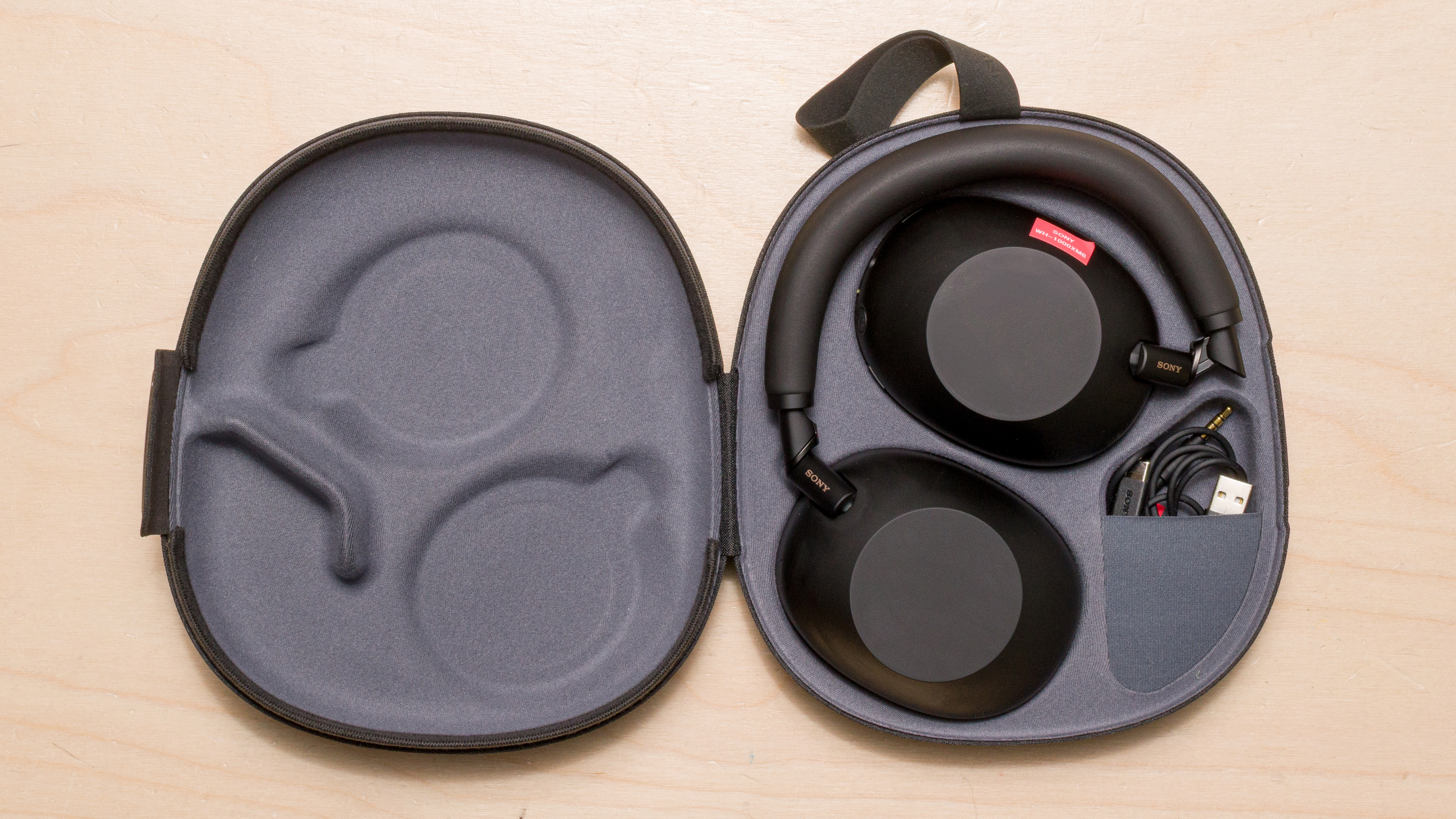 The Sony WH1000XM6 have a great case with an innovative magnetic clasp instead of a traditional zipper. The case has an outer shell with a soft inner lining, which should protect the headphones from some falls and in your bag. You can also store additional cables and small accessories in a dedicated cutout inside the case.