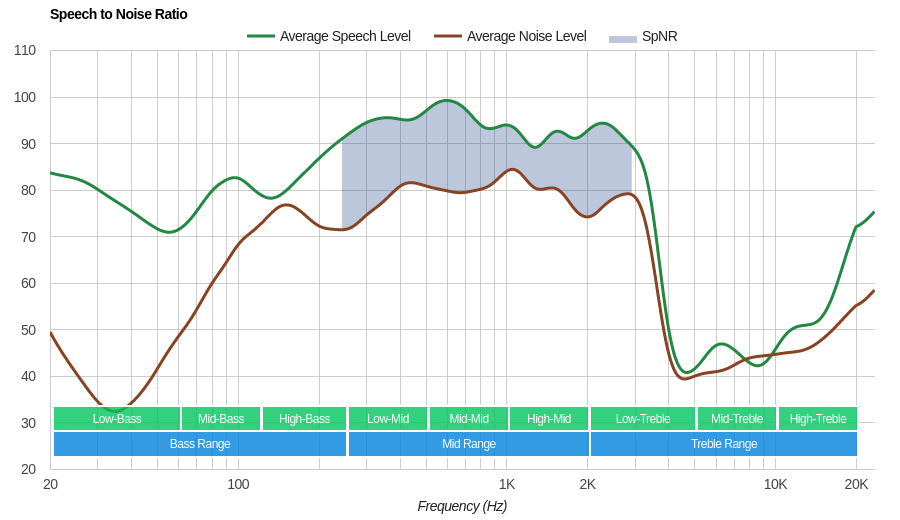 The integrated microphone of the WH-H900N is mediocre at noise handling. It achieved a speech-to-noise ratio of 15dB in our SpNR test. This indicates that it is best suited for use in quiet environments, since it will struggle to fully separate speech from ambient noise, in loud and even moderately loud conditions.