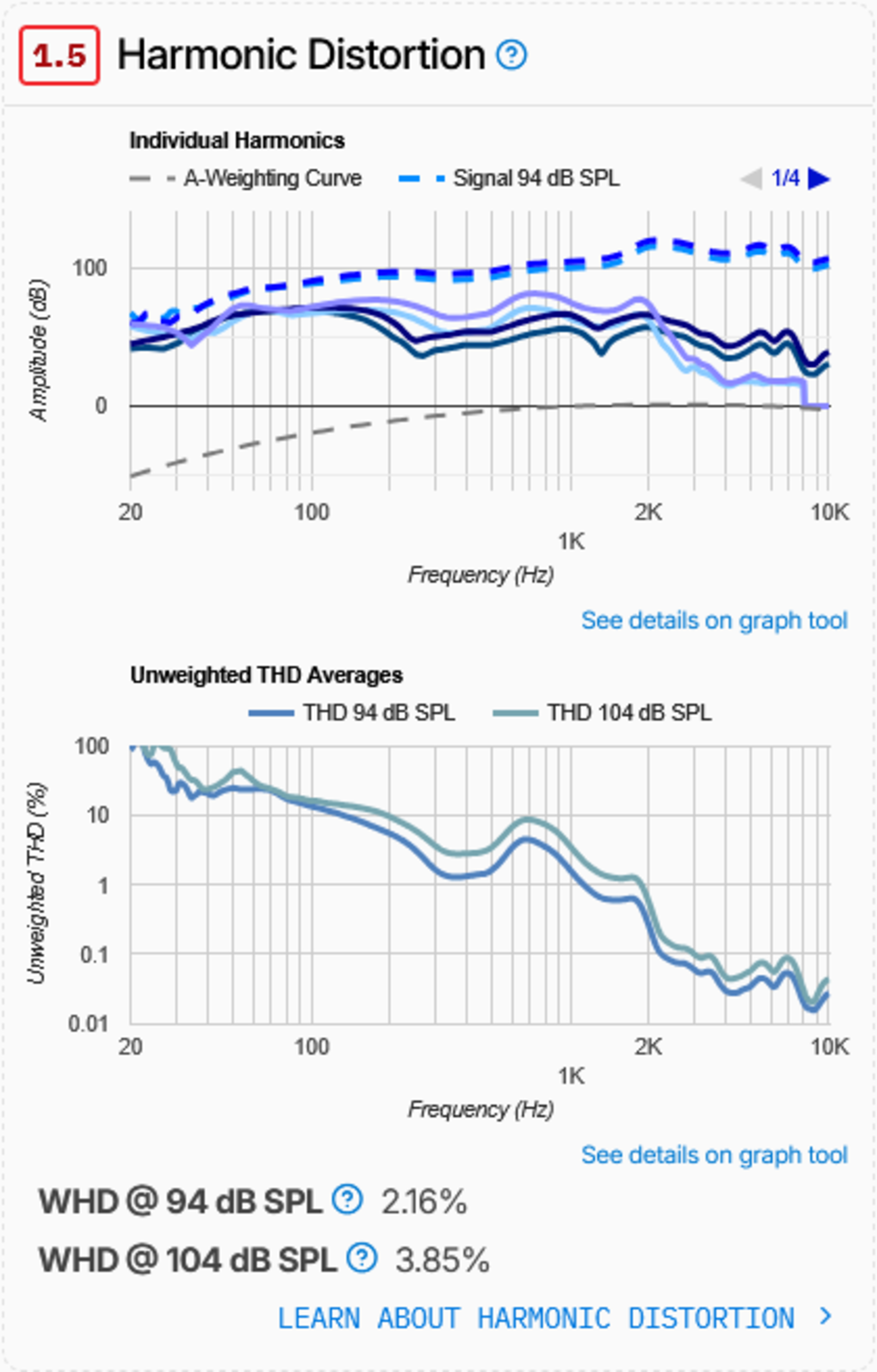 While these headphones produce a small amount of noticeable distortion during normal listening, the test score doesn’t fully reflect this real-world performance. At high volumes, the buds' loose clamp can cause them to rattle against the outer ear, which significantly worsens their distortion score in the bass range. As a result, like we did with Shokz OpenRun Pro 2 Bone Conduction earbuds, we've marked this test N/A. But you can still view the data we obtained in this graph.