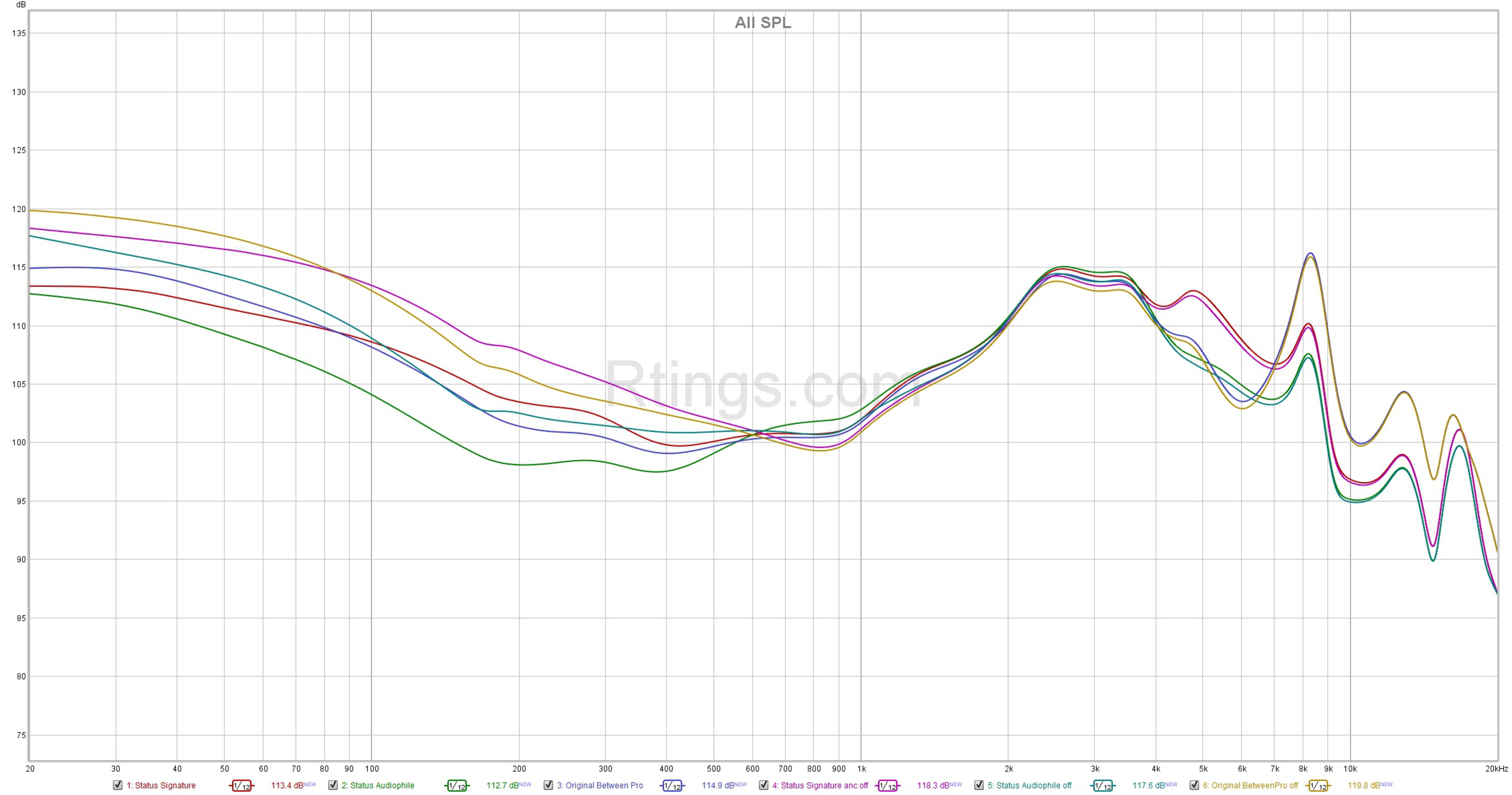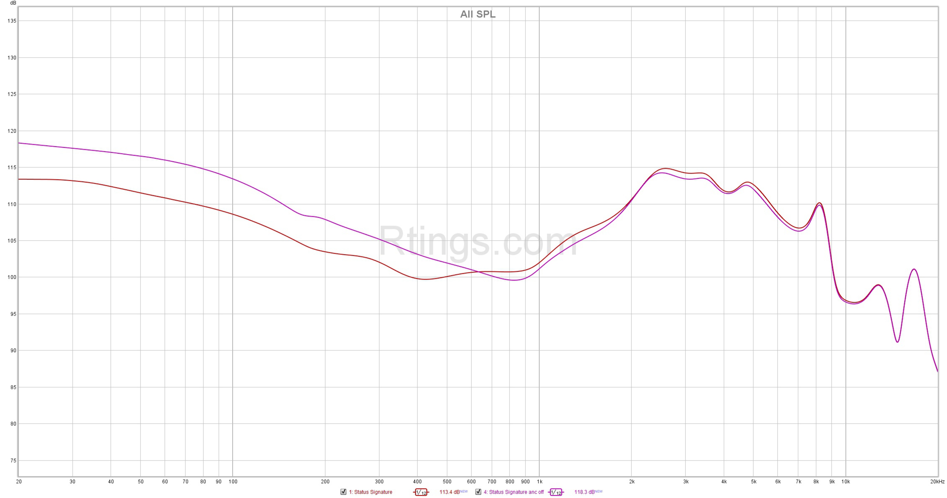 We noticed a difference in frequency response when using the Status Signature EQ preset depending on whether the ANC is on versus off. When the feature is off, the buds deliver a lot more bass than when on. However, the extra boom and warmth also muddies vocals and instruments. You can see a comparison between both settings here. You can also see a comparison of all the EQ presets with ANC on versus off here.