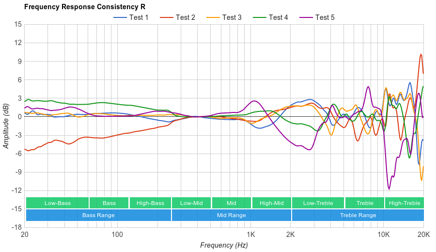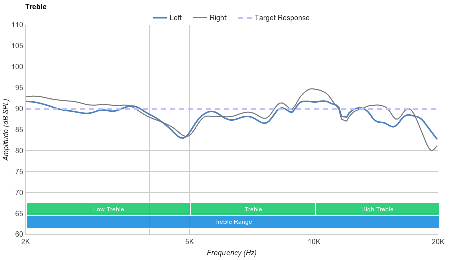 The treble accuracy is outstanding but its delivery can vary across users. While there are some small dips across the range that could darken or veil vocals and lead instruments, it shouldn't be too noticeable. However, this treble accuracy performance represents the average response and your experience may vary.
