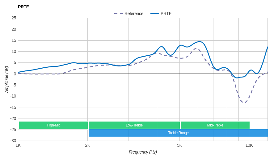 Excellent Mid-Range performance. Low-mid is reproduced flawlessly. There is a small but broad dip surrounding 1KHz, which tends to push vocals/leads to the back of the mix. However, at about 1dB this effect will be very subtle.