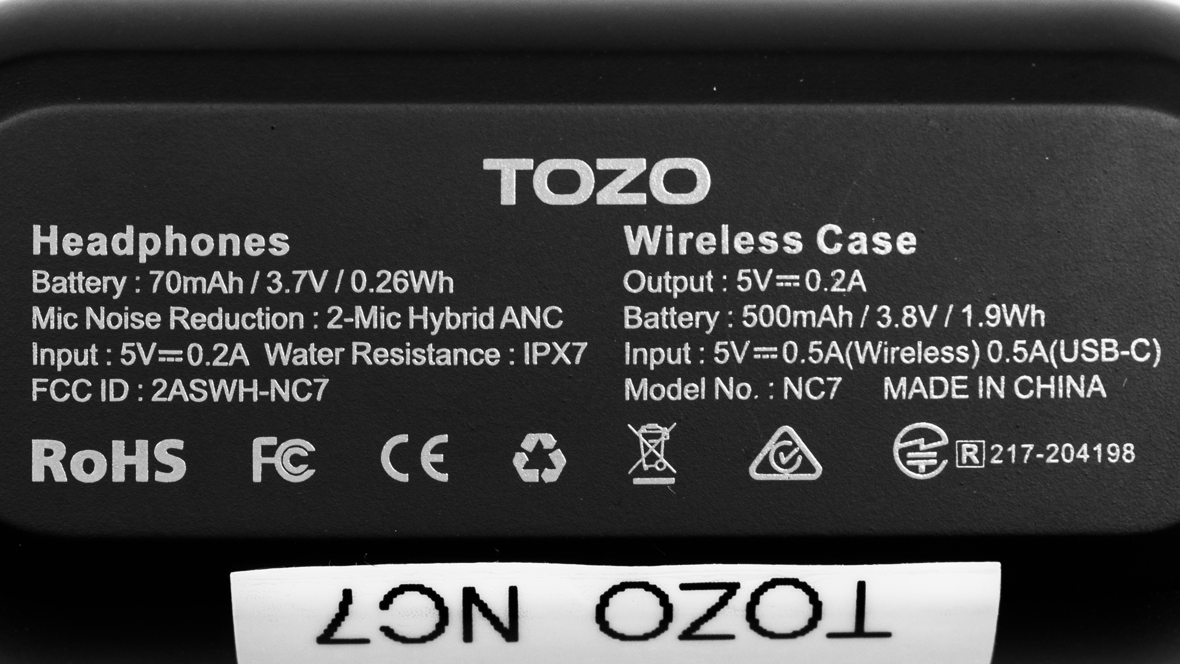 The TOZO NC7 come in 'Black', and you can see the label for the model we tested here.