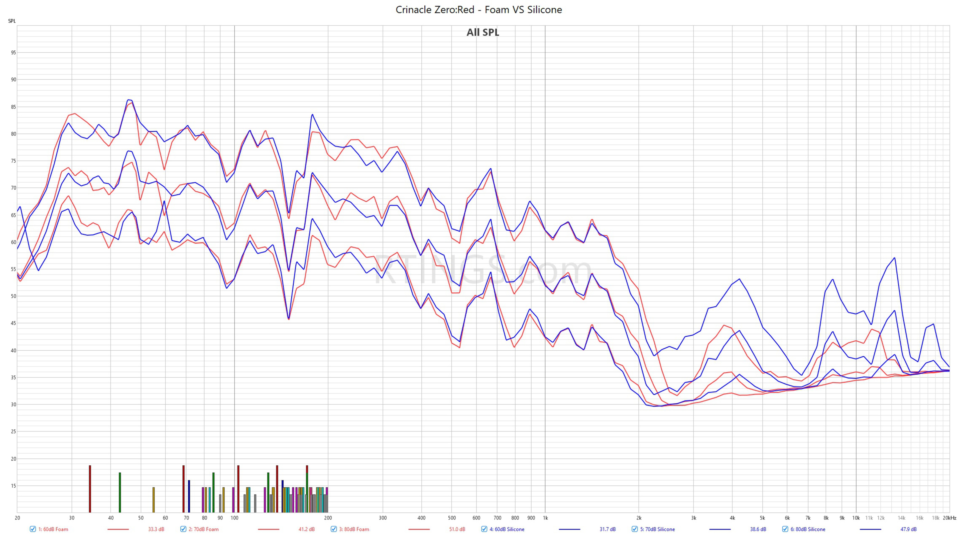 The TRUTHEAR ZERO: RED have a decent noise isolation performance, surpassing their predecessor's, but falling short of the TRUTHEAR HEXA's. While they don't have an ANC feature, their in-ear fit means these buds provide some passive isolation against ambient sound. As a result, they block minimal amounts of bass-range noise but do a better job of isolating against mid-range sounds. They're great at blocking out treble-range sounds, like fridge hum. Their improved noise isolation performance compared to their predecessor is likely due to a change in the makeup of the foam tips. While they look identical to those that came with the previous generation, these new tips have a little less spring to them. You can see a graph of our results comparing the performance of the foam tips and silicone tips here. While they block out a similar degree of noise in the bass and mid-ranges, the foam tips provide more isolation against treble range sounds, especially if they're loud.