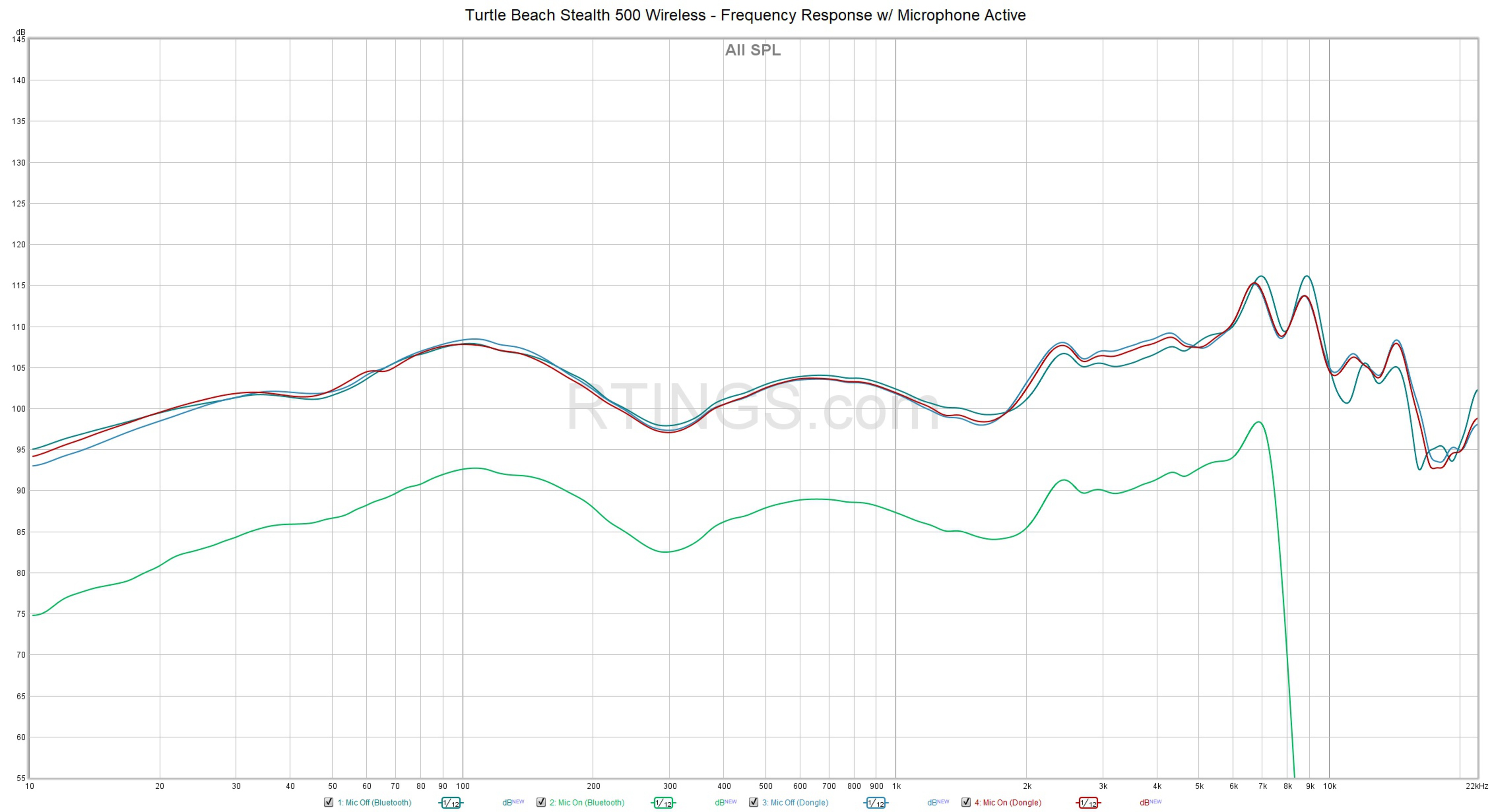 The Turtle Beach Stealth 500 have okay mid-range compliance. A small dip in the low-mids causes sound effects to feel a little thin, while a peak in the mid-mids can make voices sound a bit honky. By contrast, a large dip in the high-mids means dialogue sounds a bit recessed and distant. Overall, whether these headphones make a voice sound honky or distant will depend on the pitch of the person speaking, which isn't ideal for accurate representation of recorded sound.