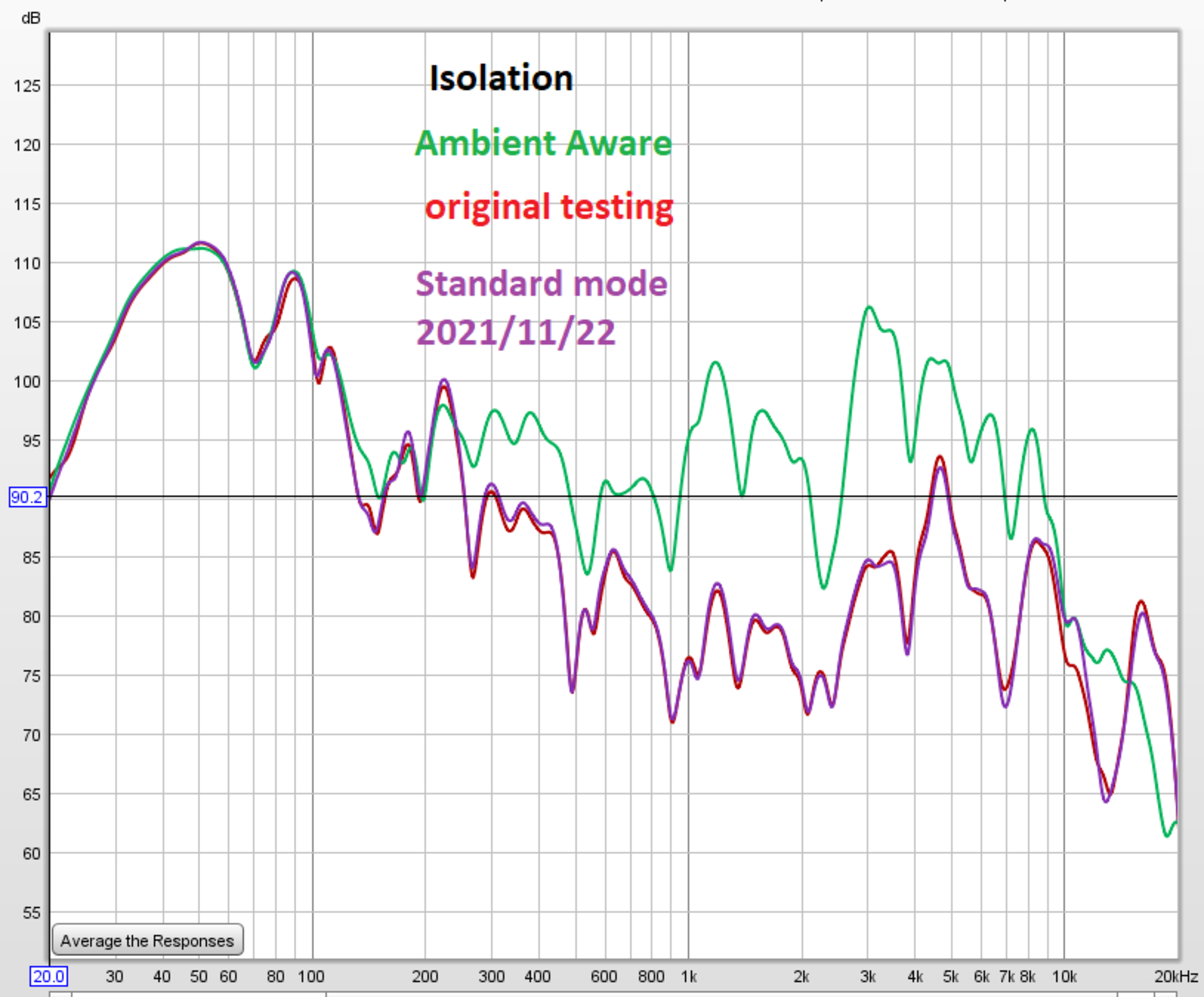 They have a 'Transparency' mode advertised to amplify ambient sound so you can hear what's going on around you without turning down your audio. The headphones' noise isolation performance was tested with this feature turned off ('Standard' mode). However, you can see a comparison of their noise isolation performance with 'Transparency' on versus off here. The companion app says you should turn off 'Transparency' mode in windy places.