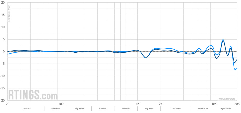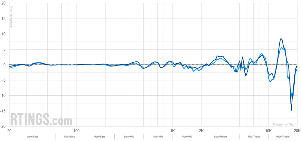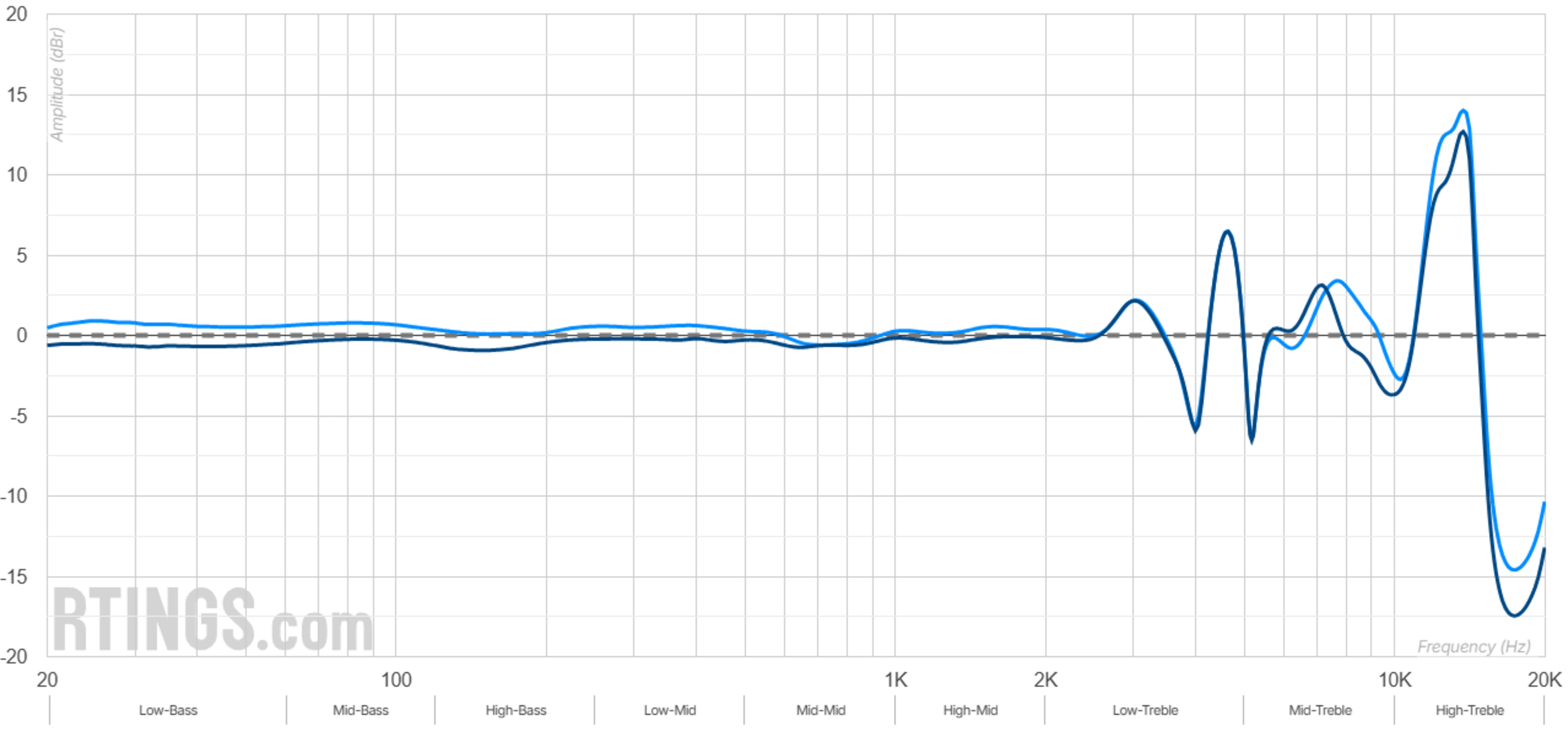 We analyze these between 20Hz and 9kHz since perception of higher frequencies varies a lot from person to person, and even small shifts in position can dramatically affect the response above 9kHz. This is partly due to individual differences in Head-Related Transfer Function (HRTF), which shape how we perceive directional and high-frequency cues. Plus, we're less sensitive to those ultra-high frequencies, so those deviations tend to matter less (that's one reason we relaxed how we scored the treble range with our Headphones Test Bench 2.0).