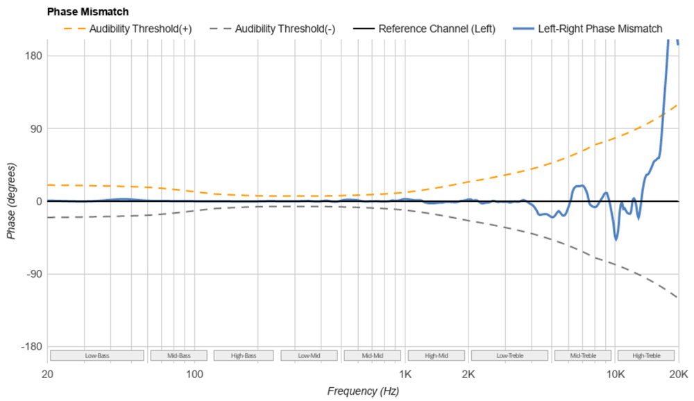 That said, the amount of deviation from 0° and the frequency range of the peak can impact whether or not you hear the mismatch. For example, the Audeze MM-100 have a peak at just under 17kHz, or in the high-treble range. However, this can be very hard to hear, especially with real-life content. This is because the higher the frequency, the harder it is to sync each wave cycle as the degree between them becomes smaller and smaller. It's also harder for us to detect these mismatches with our ears, and we lose sensitivity to this range as we age.