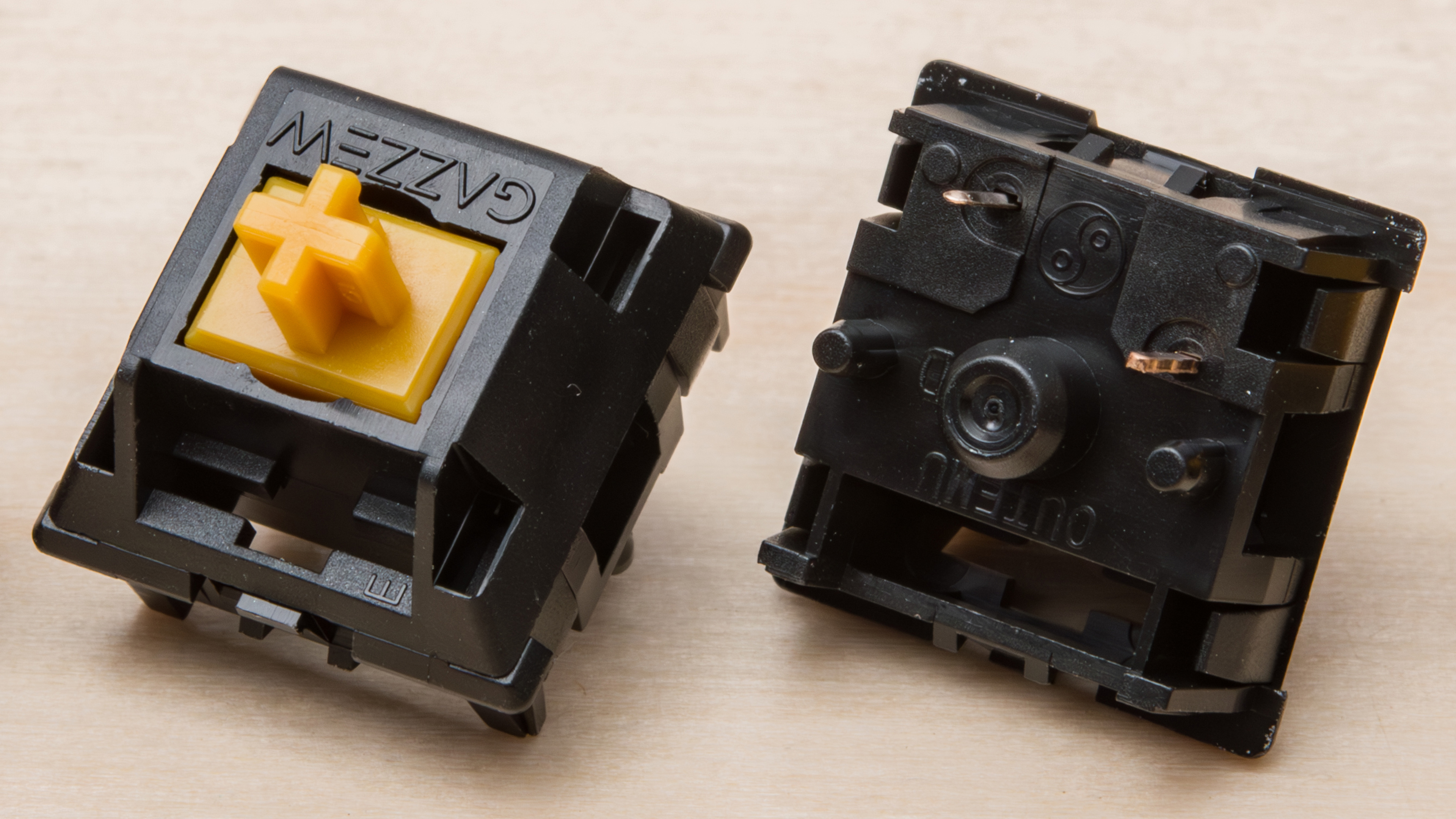 Gazzew Boba U4T (62g) and GLORIOUS Panda are both tactile switches with deep, fairly thocky sound profiles. The Gazzew switches have a shorter initial pre-travel before the bump starts and a rounder overall travel. They're also noticeably smoother from the factory. The GLORIOUS switches are scratchier and have more spring ping in their sound signature.